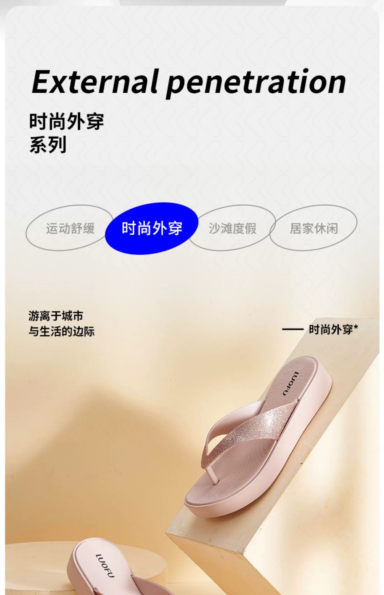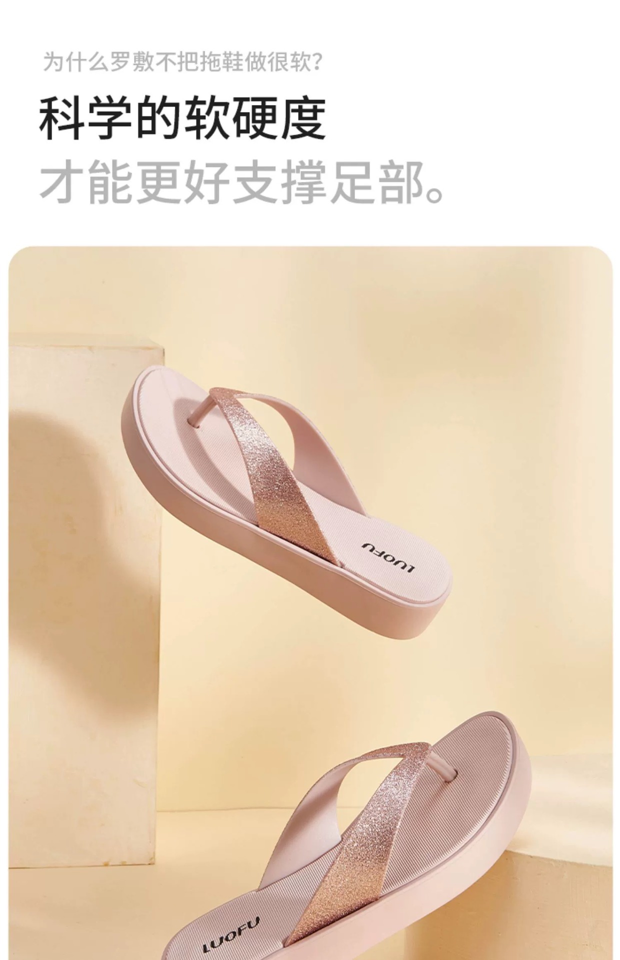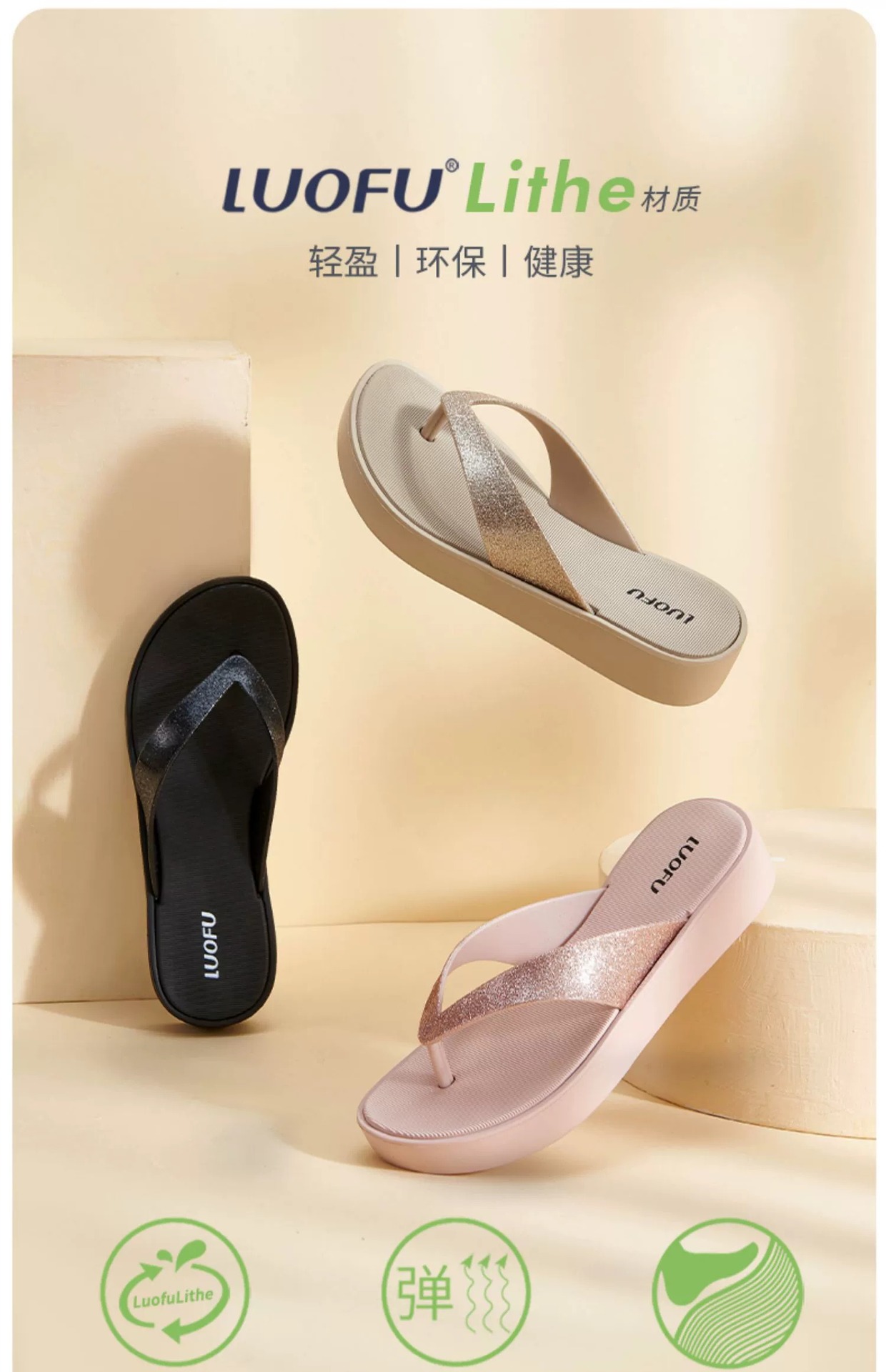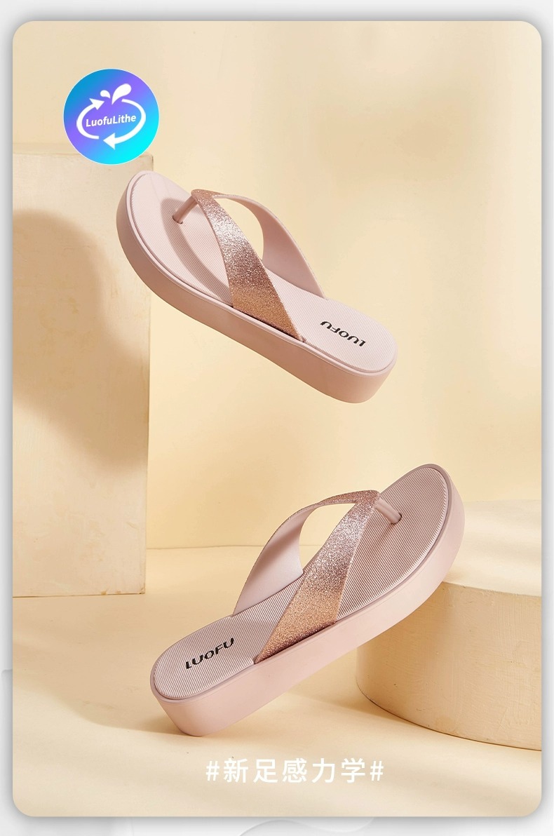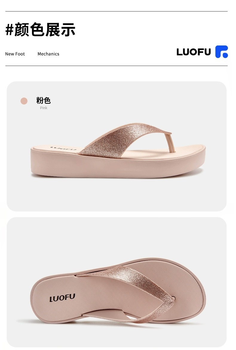 LUOFU LUOFU 여성을위한 새로운 패션 반짝이는 플립 플롭 여름 아웃 미끄럼 방지 두꺼운 바닥 플립 플롭 도매