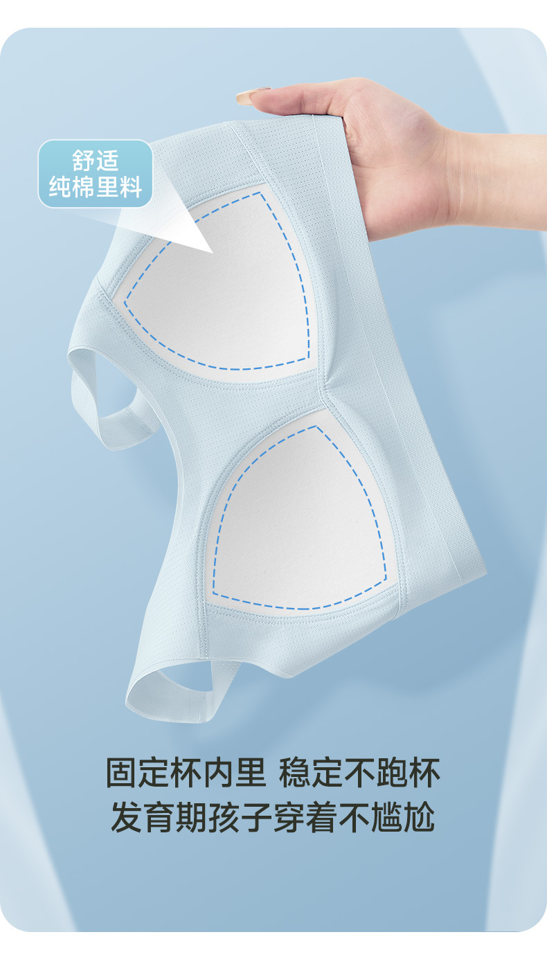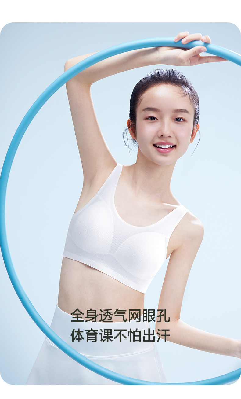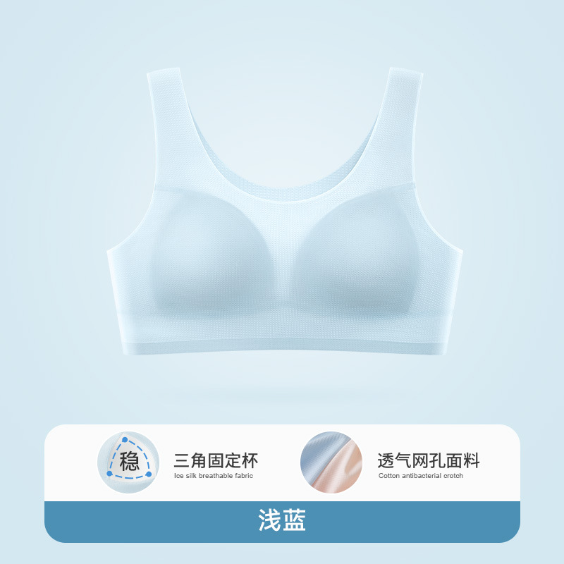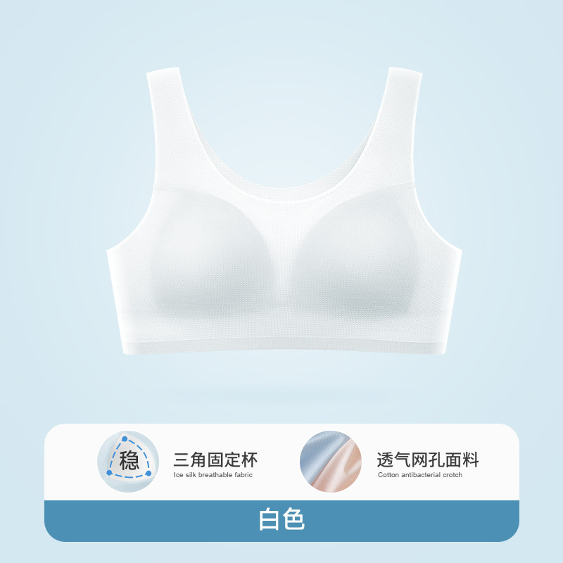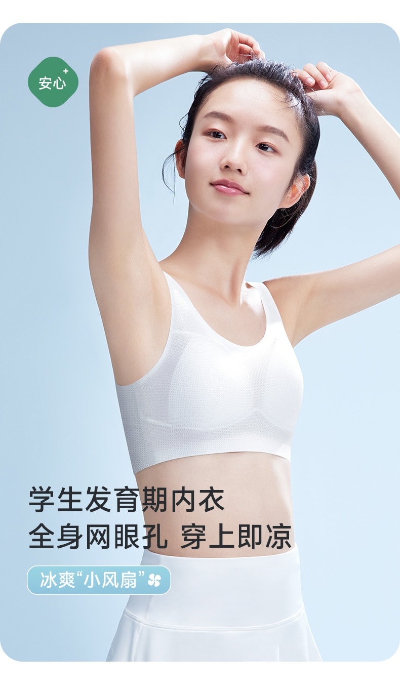 12 세 이상 얇은 통기성 개발 소녀 브래지어 고정 컵 스포츠 충격 방지 속옷 아이스 실크 여름스토어 가기