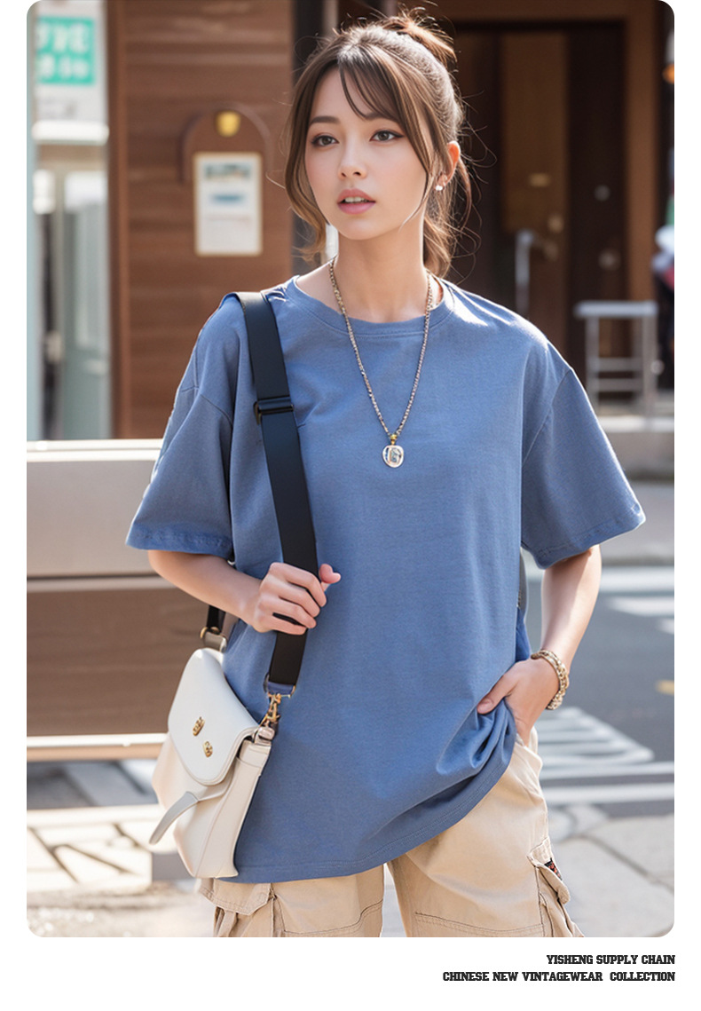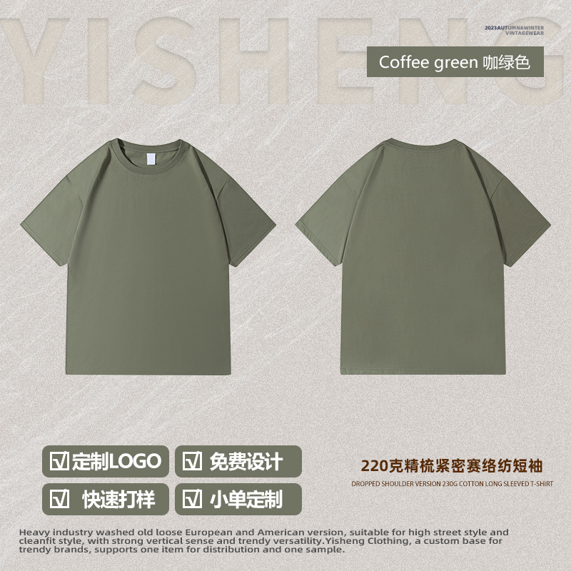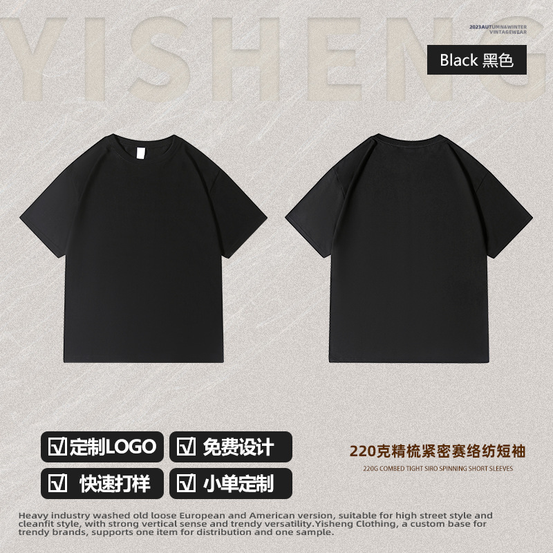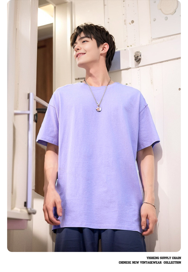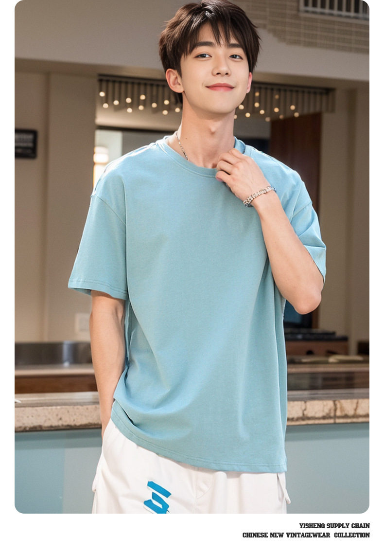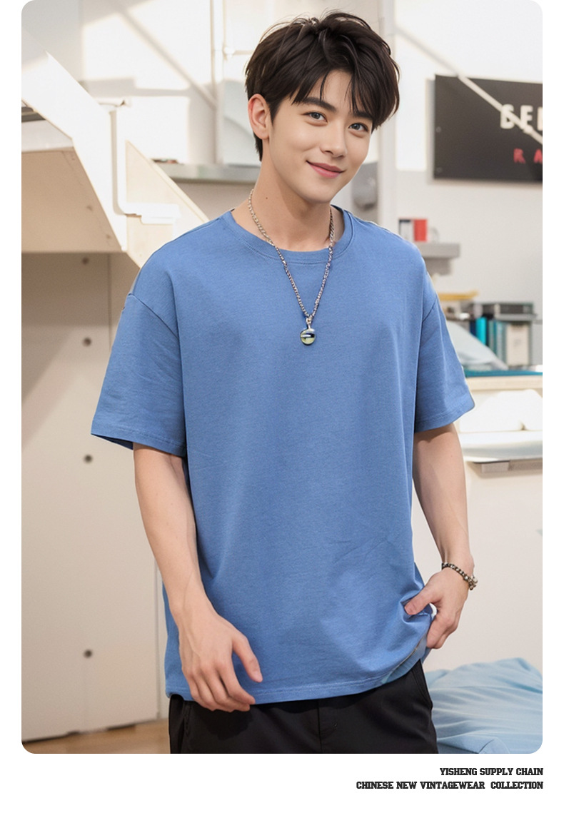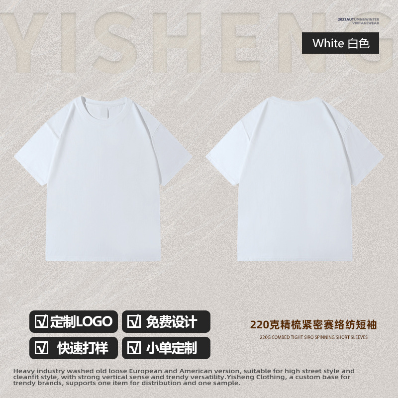 220g 순수한면 트렌디 한 순수한 흰색 반소매 드롭 숄더 짧은 소매 티셔츠 남성 커플 둥근 목 느슨한 언더 셔츠스토어 가기