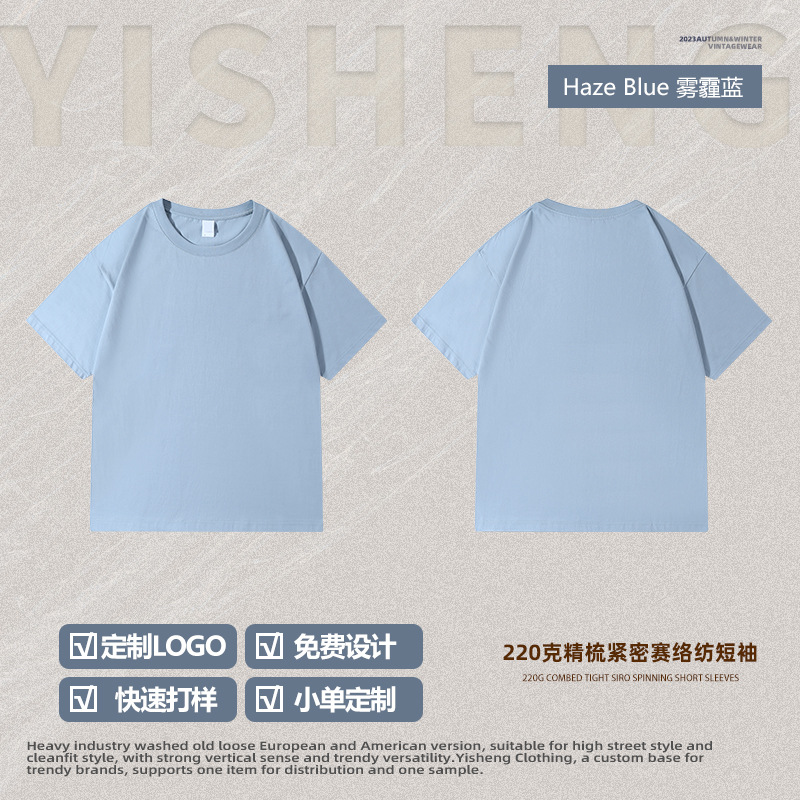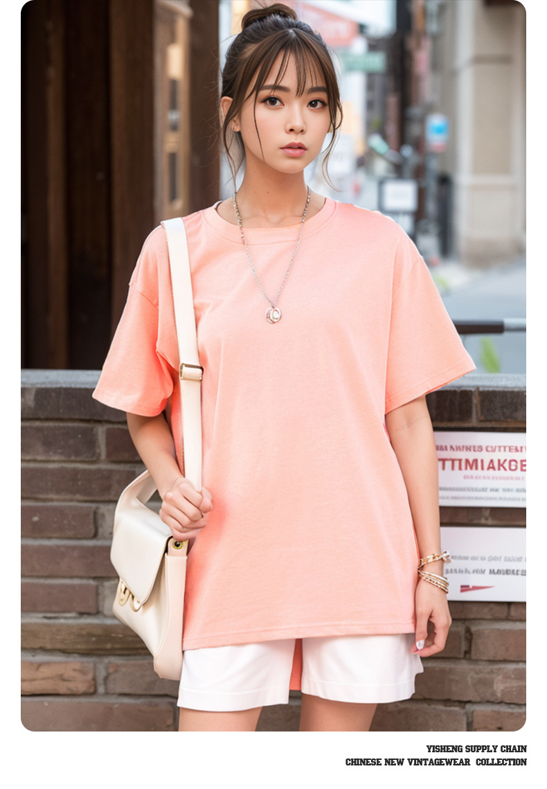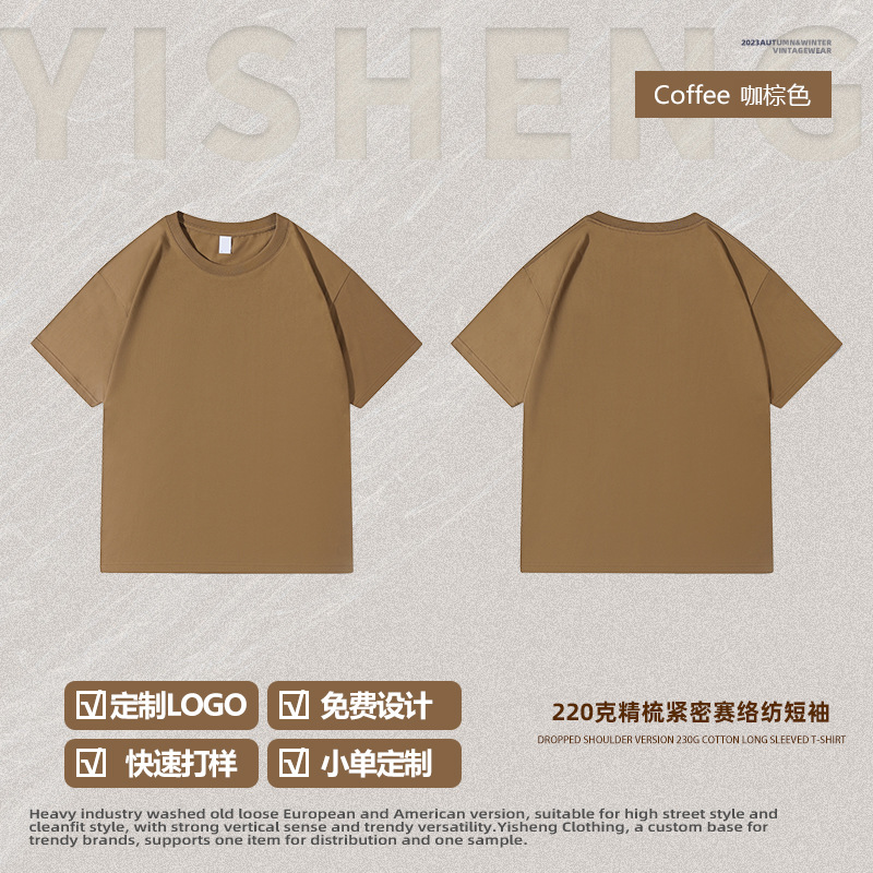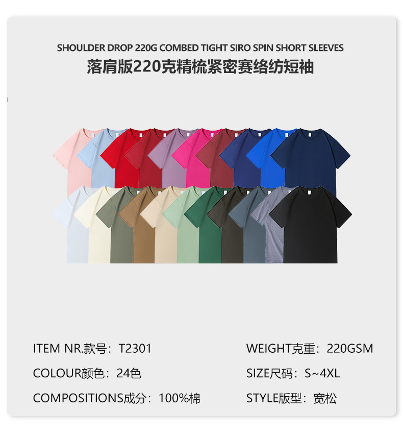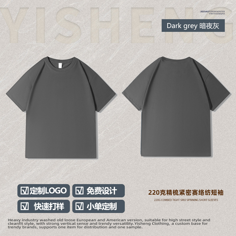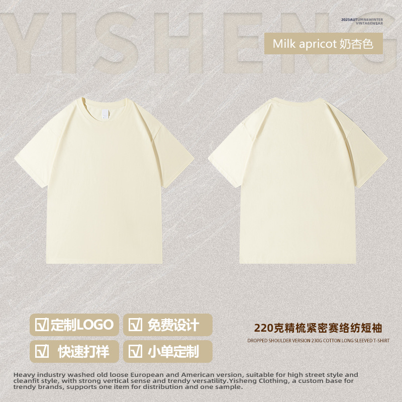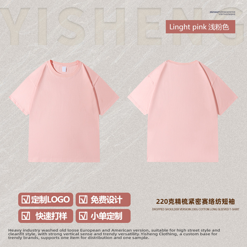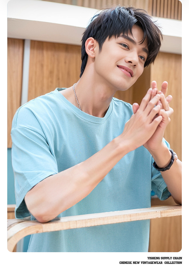 220g 순수한면 트렌디 한 순수한 흰색 반소매 드롭 숄더 짧은 소매 티셔츠 남성 커플 둥근 목 느슨한 언더 셔츠스토어 가기