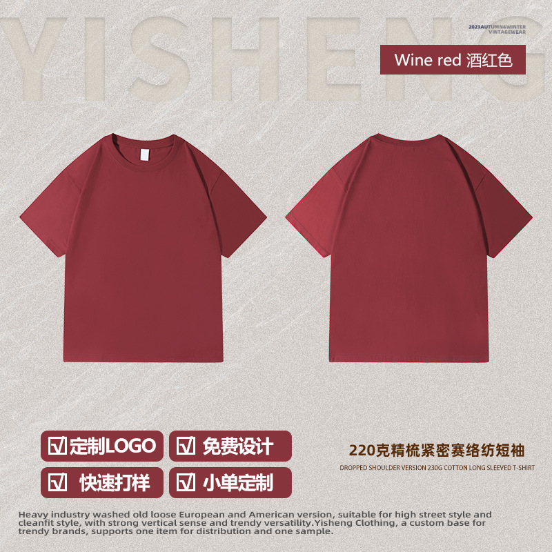 220g 순수한면 트렌디 한 순수한 흰색 반소매 드롭 숄더 짧은 소매 티셔츠 남성 커플 둥근 목 느슨한 언더 셔츠
