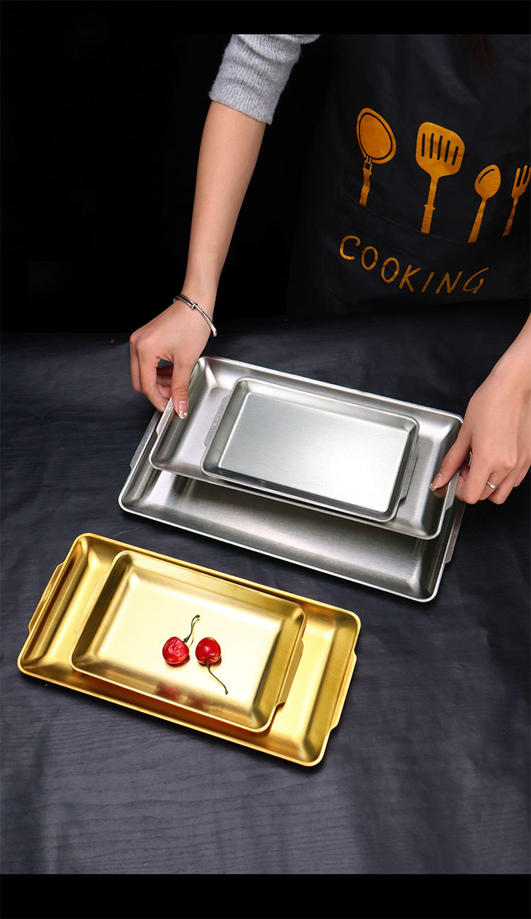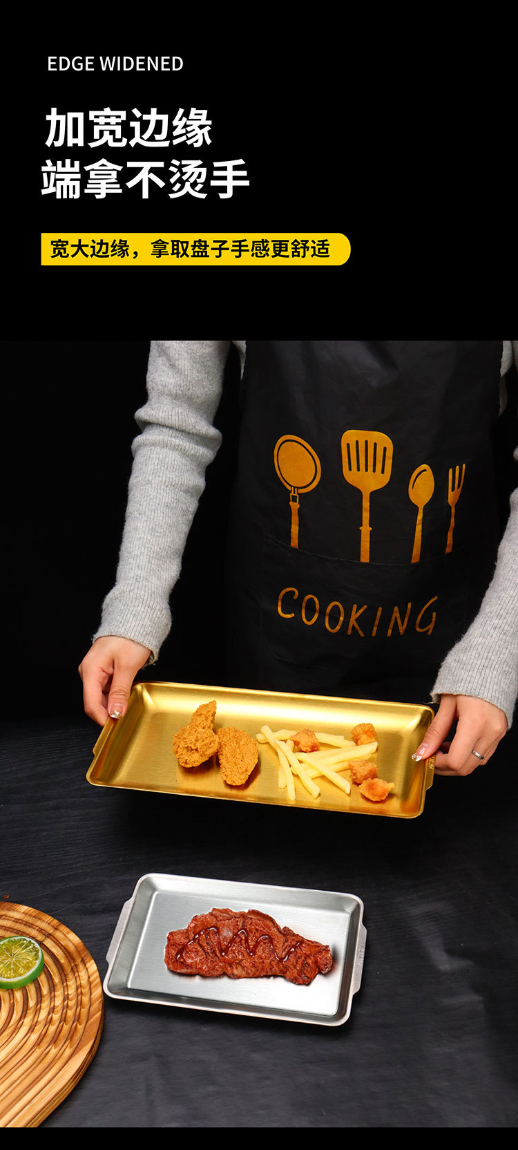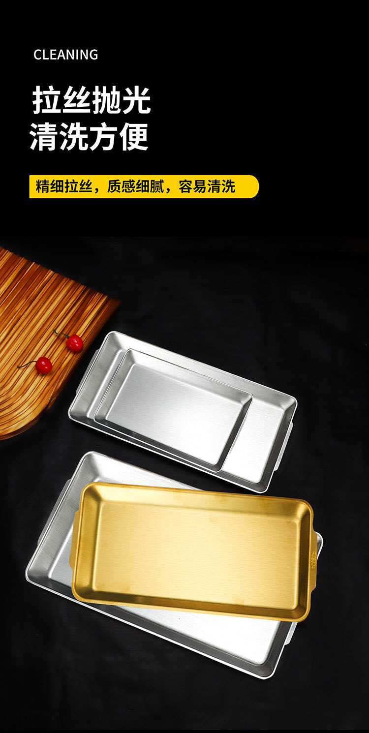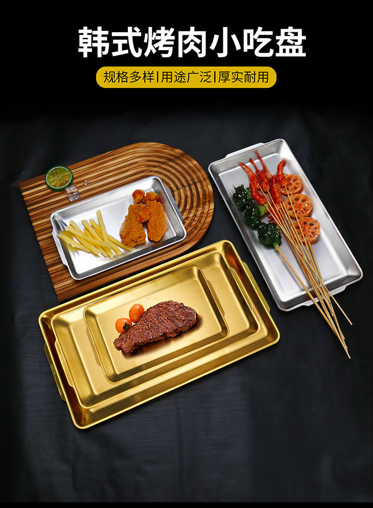 304 스테인레스 스틸 사각형 플레이트 직사각형 한국식 황금 평면 스낵 플레이트 스낵 플레이트 바베큐 냄비 레스토랑 식사 플레이트스토어 가기
