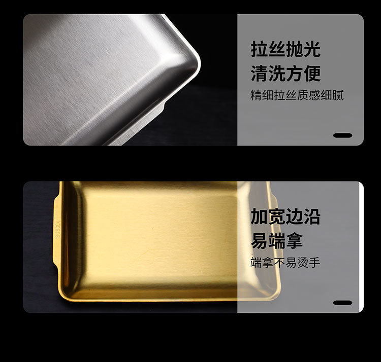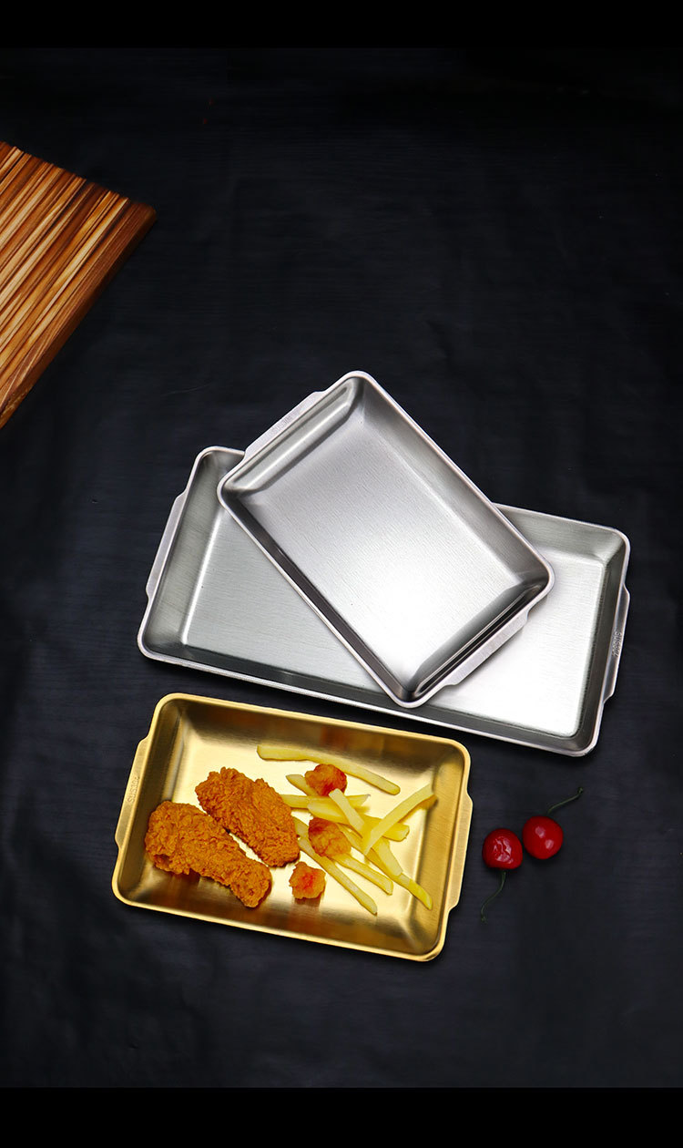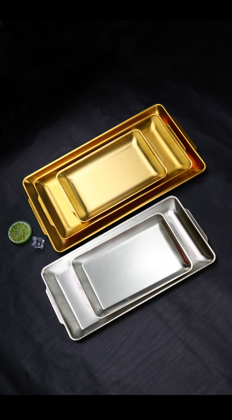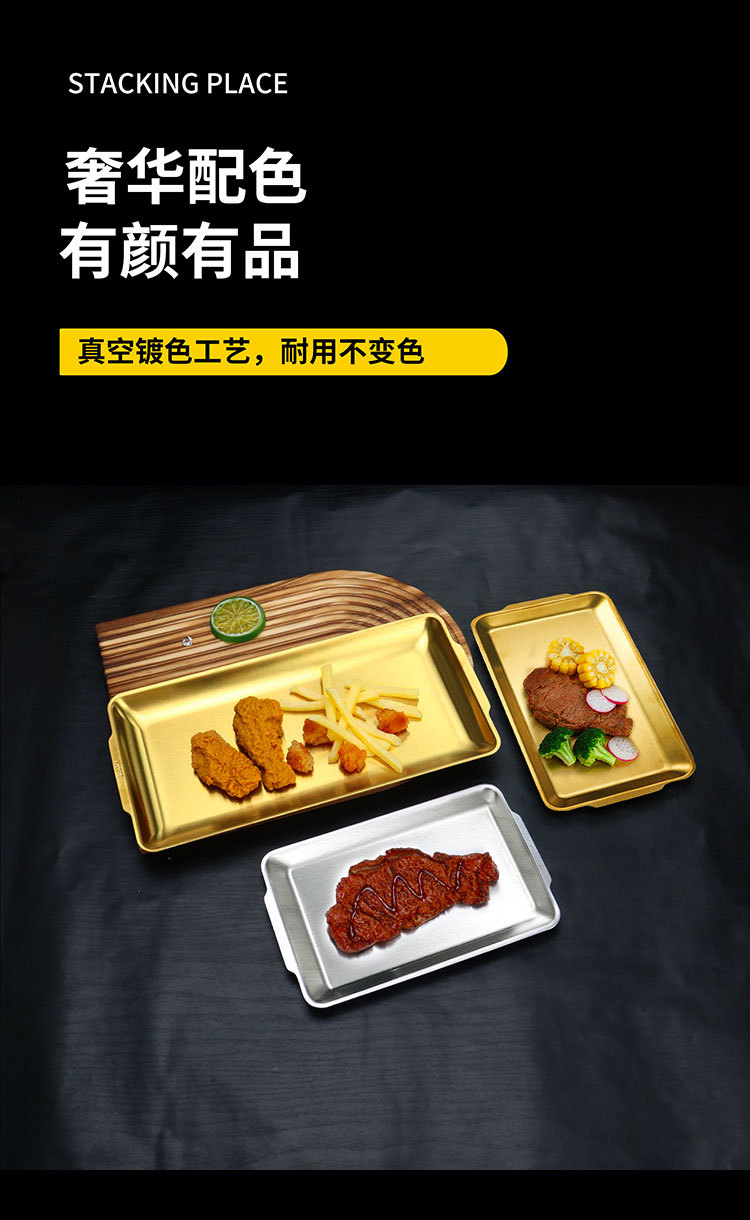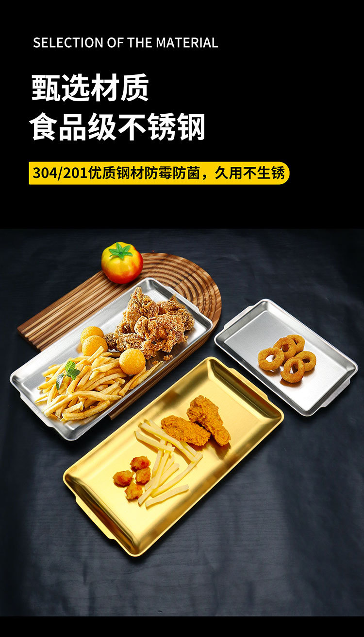 304 스테인레스 스틸 사각형 플레이트 직사각형 한국식 황금 평면 스낵 플레이트 스낵 플레이트 바베큐 냄비 레스토랑 식사 플레이트스토어 가기