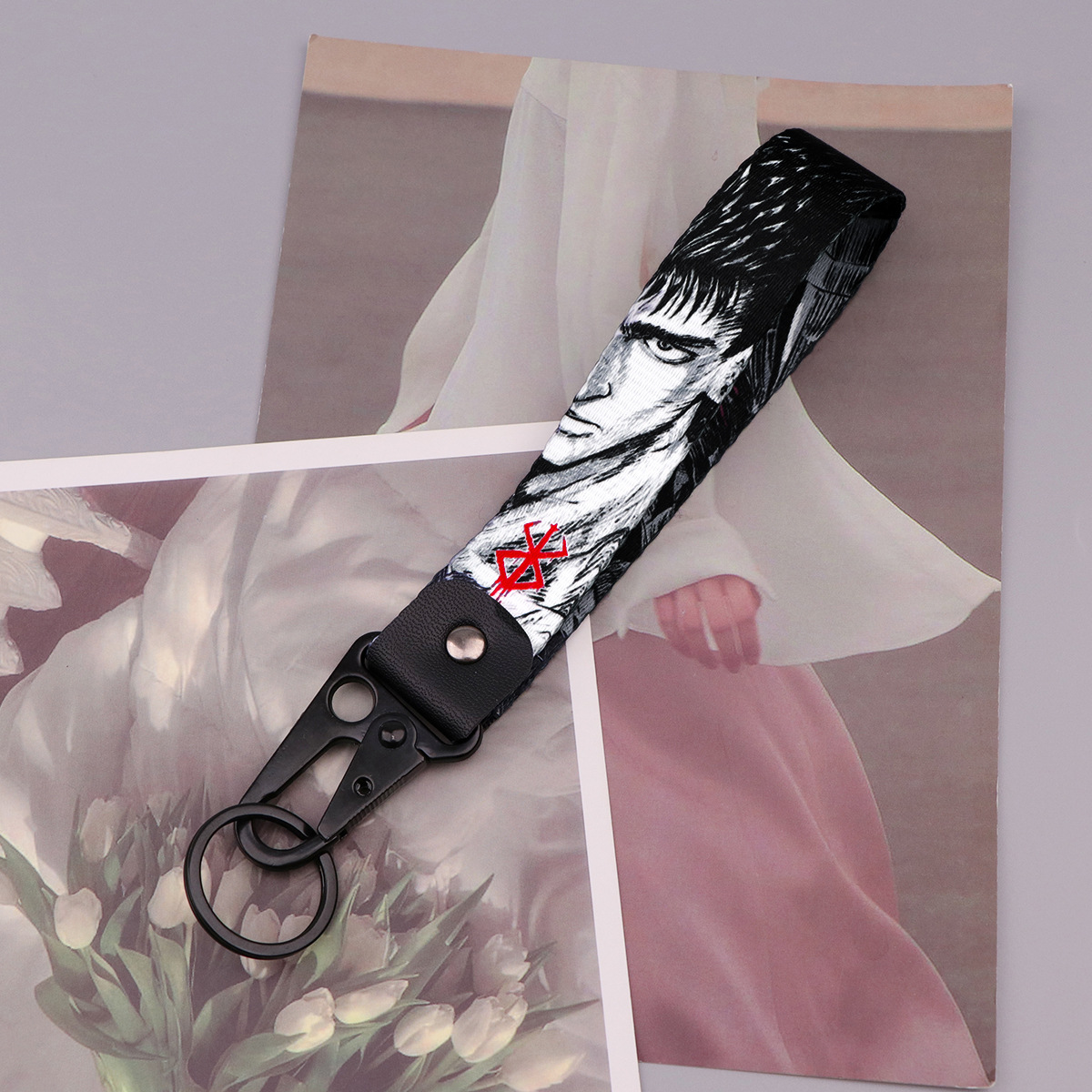 애니메이션 만트라 백 Warhawk 입 키 체인 칼 바람 펜던트 자동차 키 체인 로프 가죽 금속 스타 장식품스토어 가기