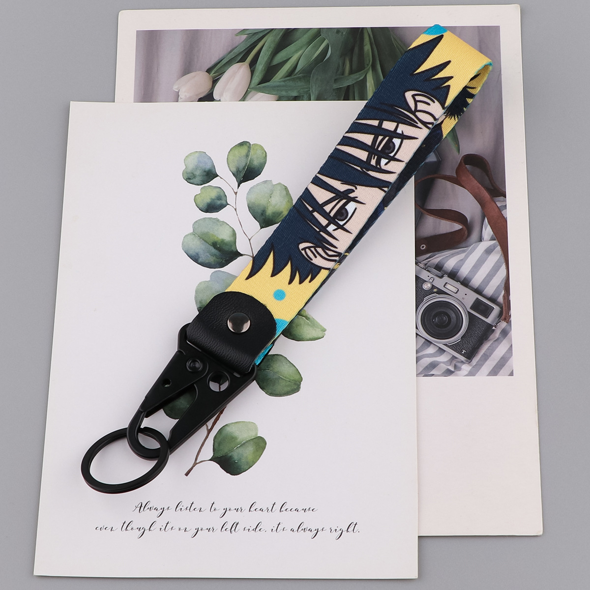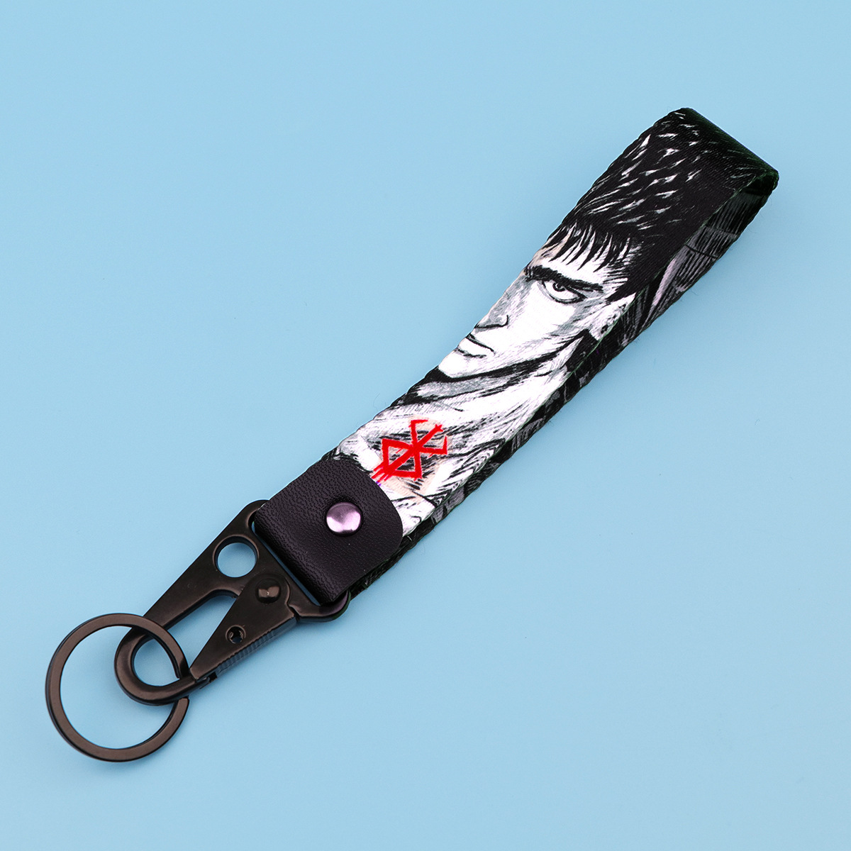 애니메이션 만트라 백 Warhawk 입 키 체인 칼 바람 펜던트 자동차 키 체인 로프 가죽 금속 스타 장식품