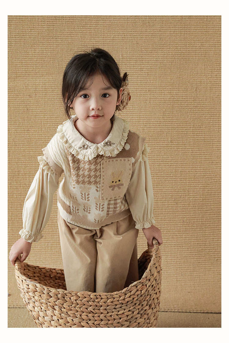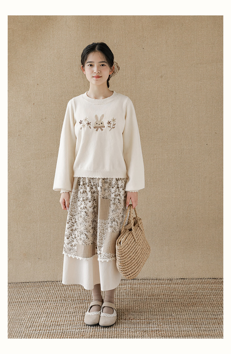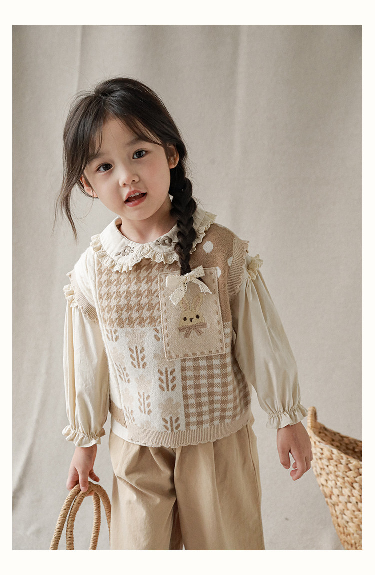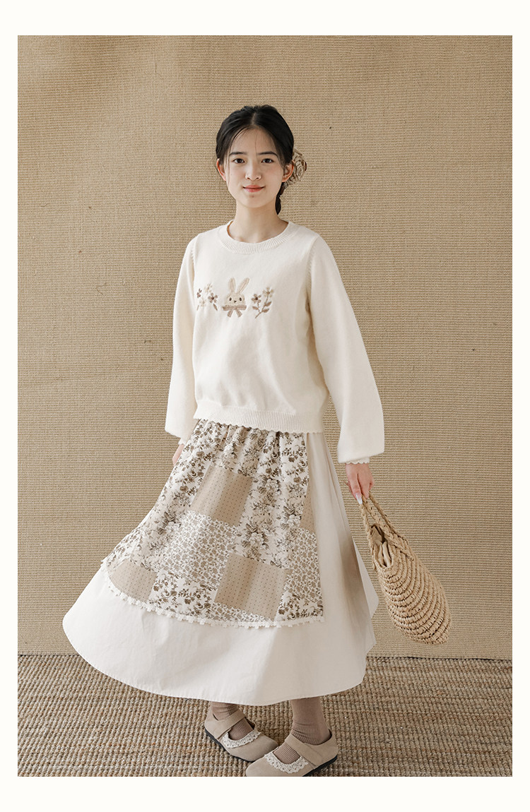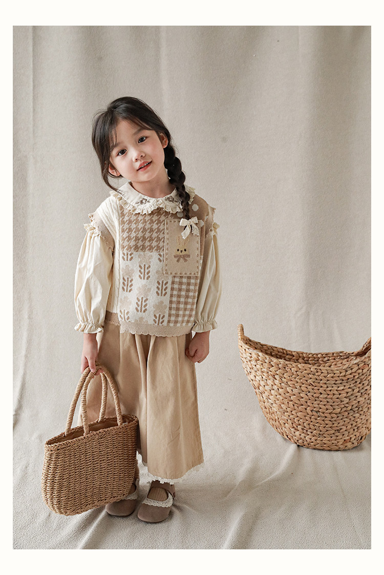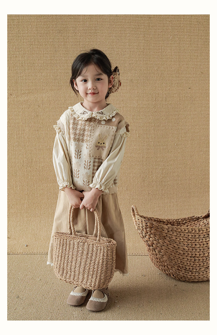 Wulibuyi 소녀의 봄과 가을 조끼 셔츠 만화 자수 스웨터 귀여운 정원 세트 어린이 치마