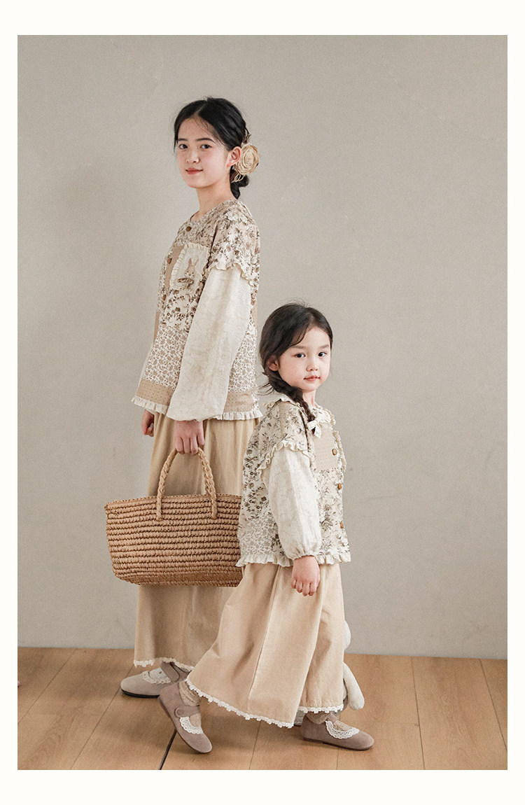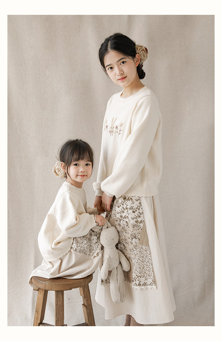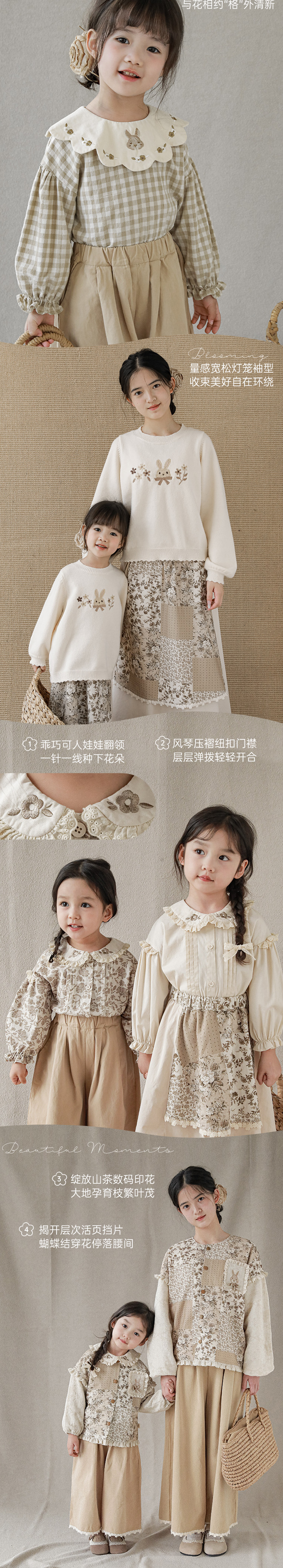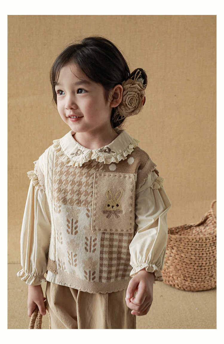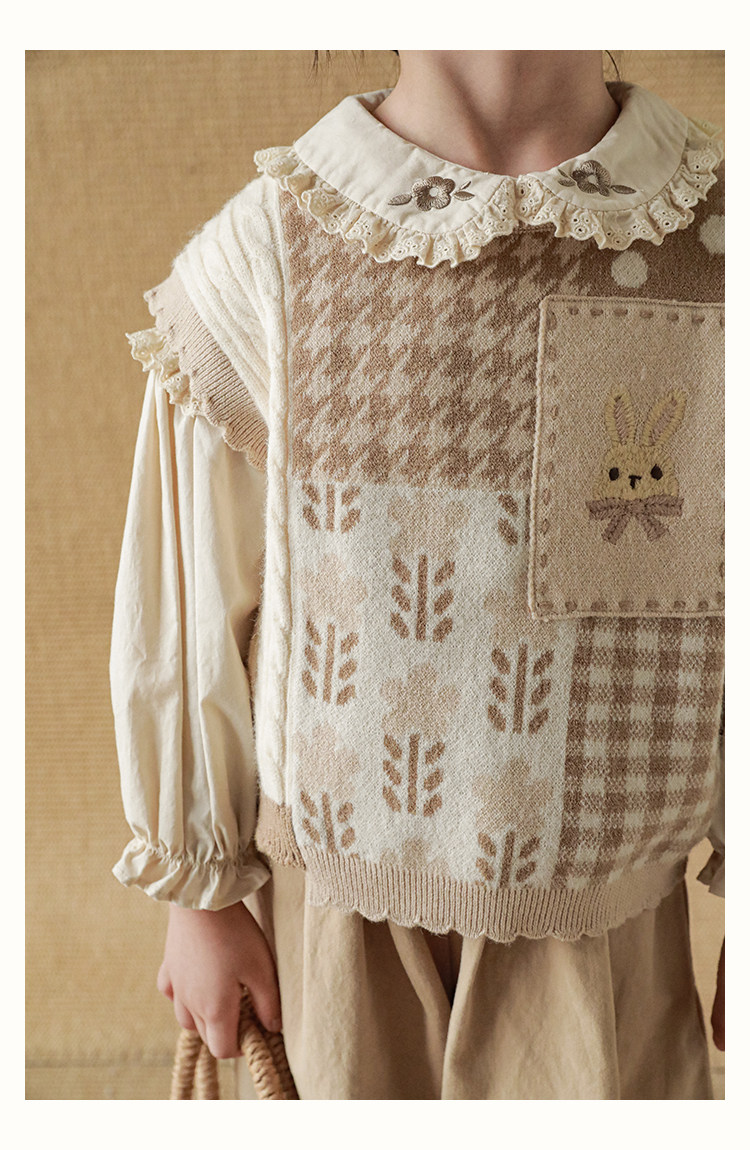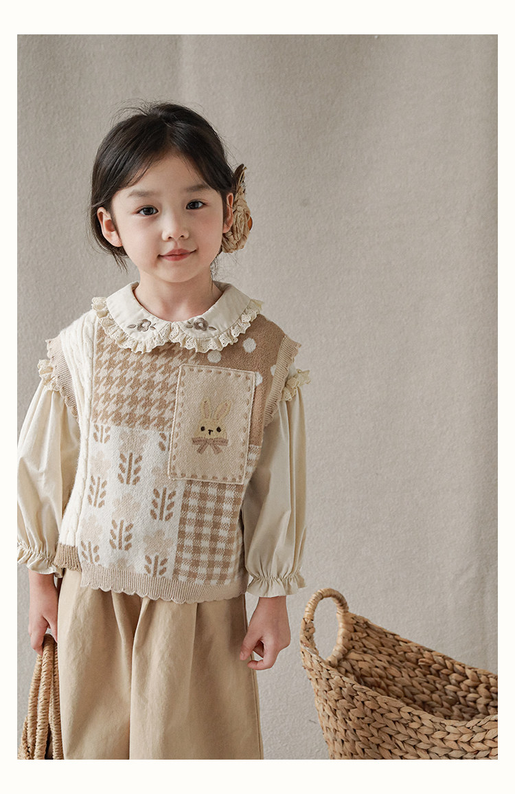Wulibuyi 소녀의 봄과 가을 조끼 셔츠 만화 자수 스웨터 귀여운 정원 세트 어린이 치마