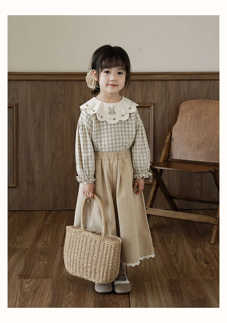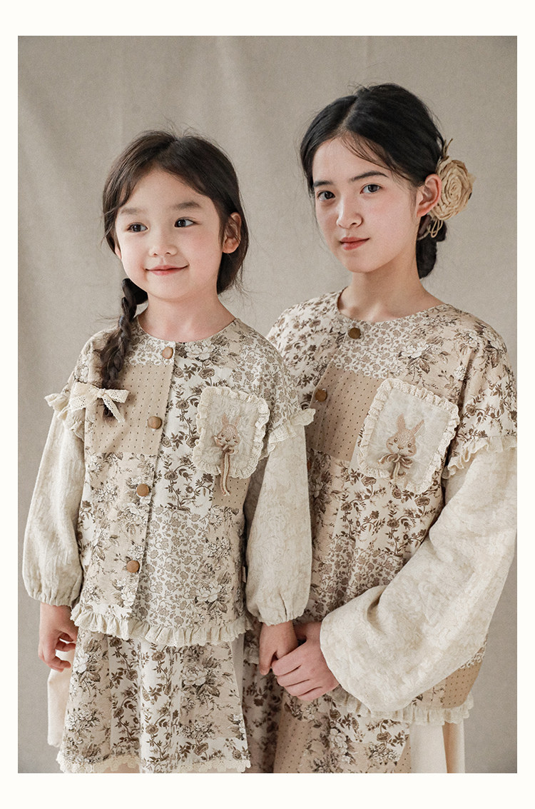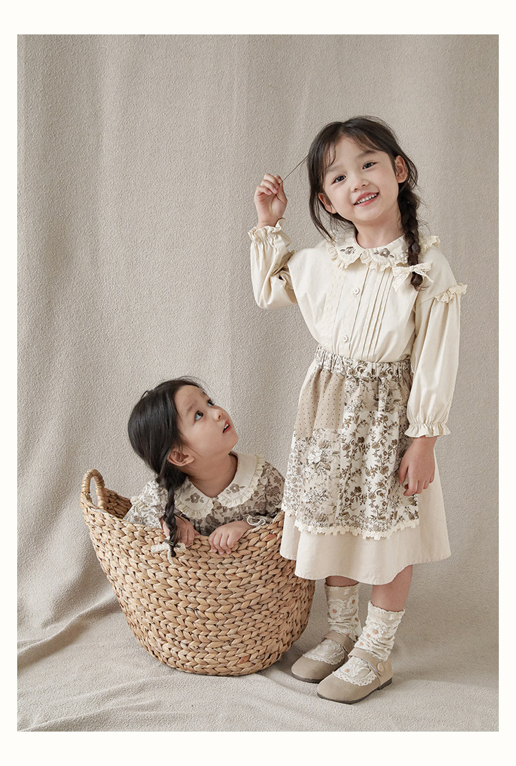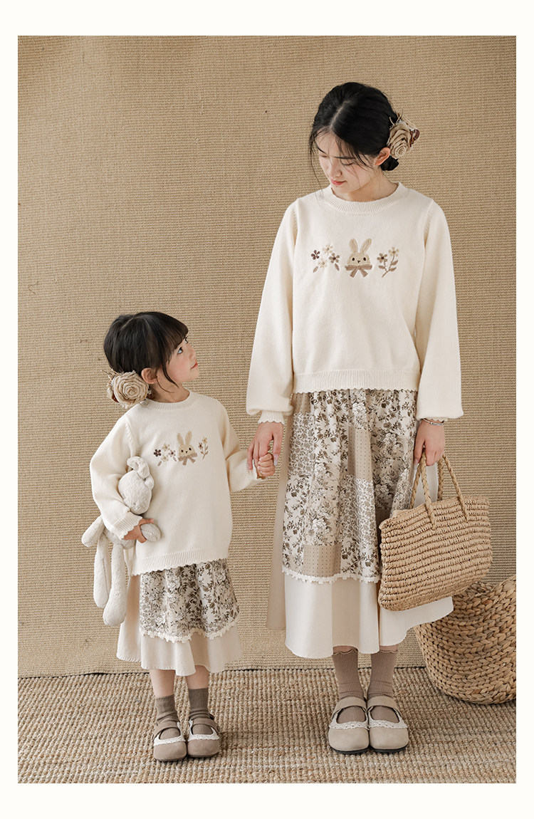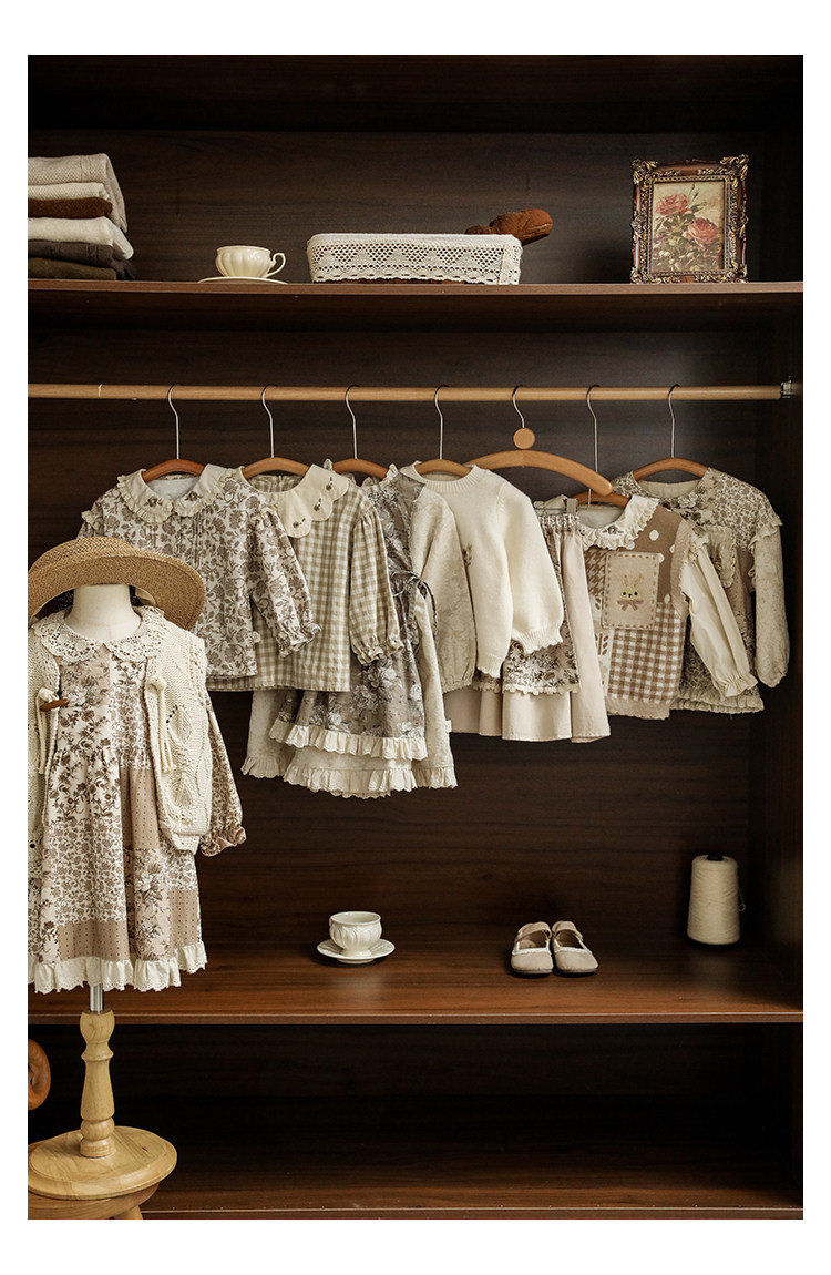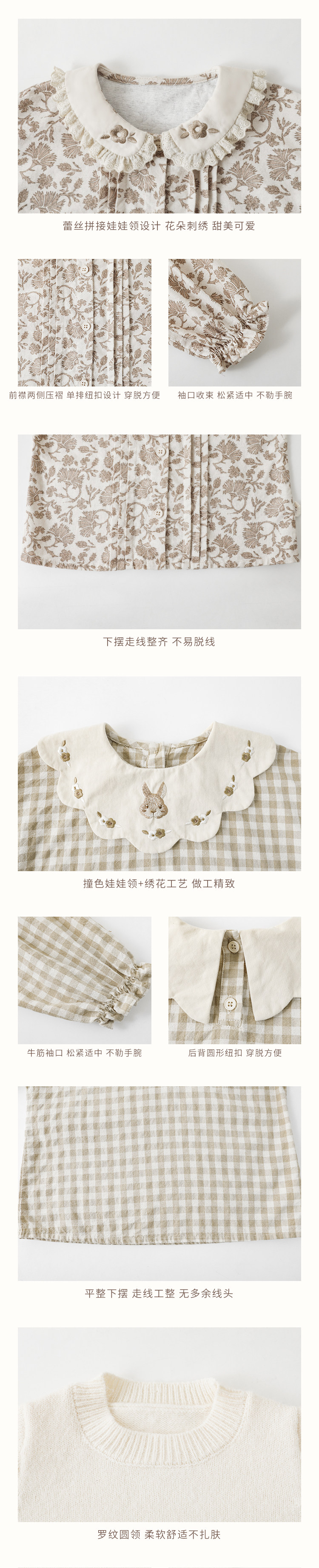 Wulibuyi 소녀의 봄과 가을 조끼 셔츠 만화 자수 스웨터 귀여운 정원 세트 어린이 치마