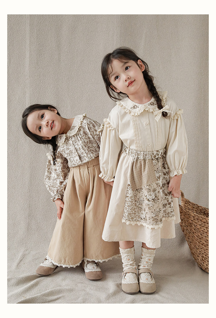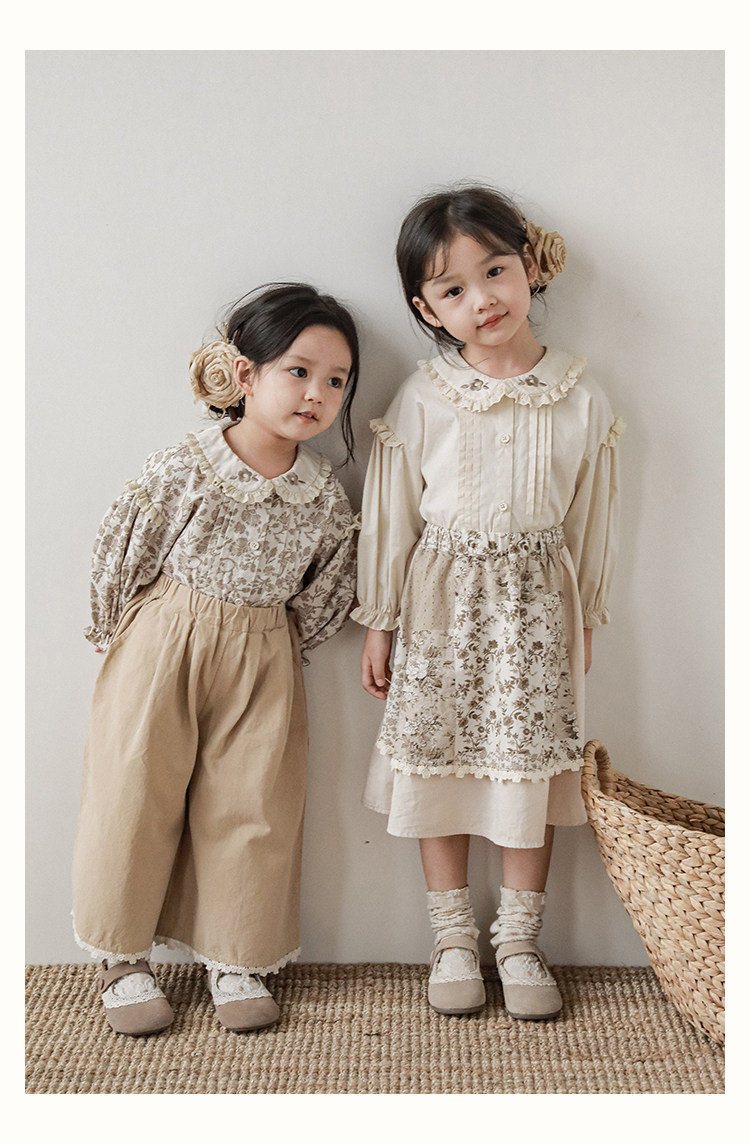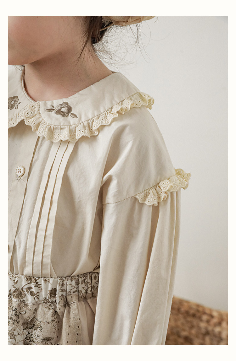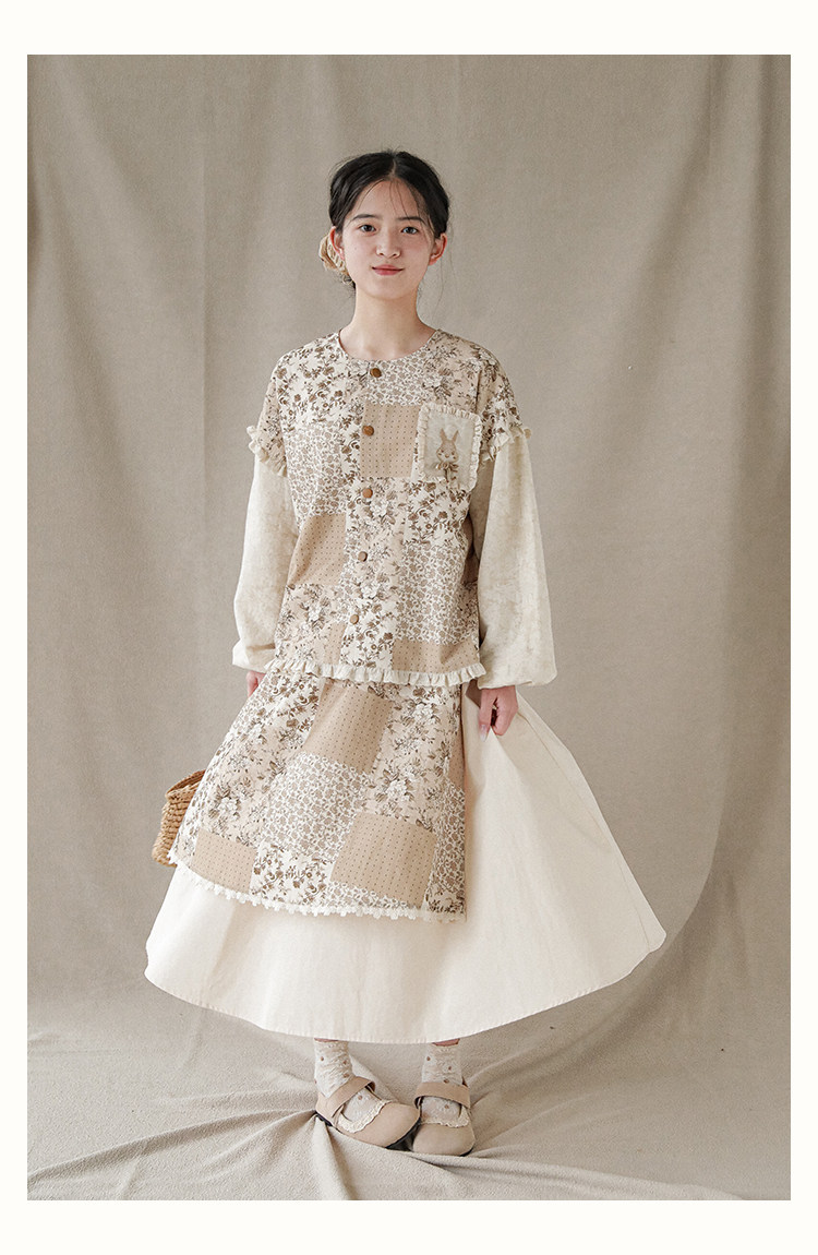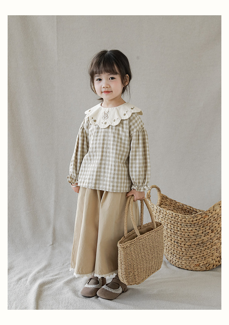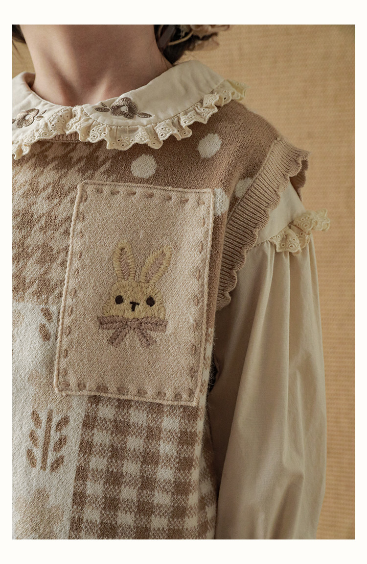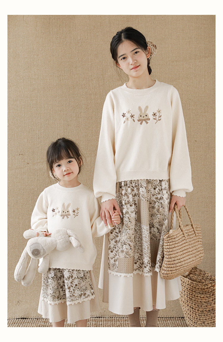 Wulibuyi 소녀의 봄과 가을 조끼 셔츠 만화 자수 스웨터 귀여운 정원 세트 어린이 치마