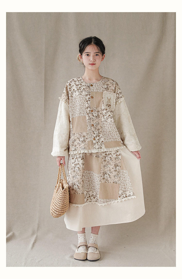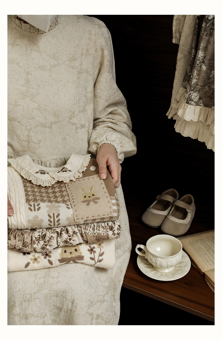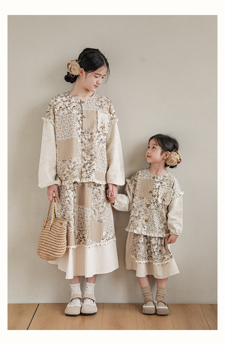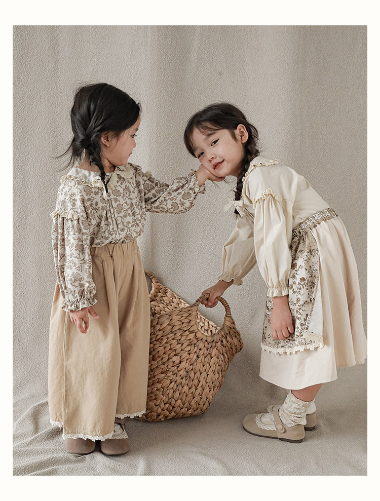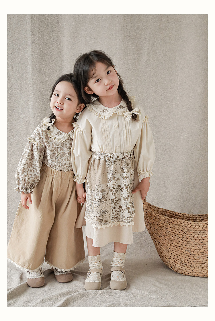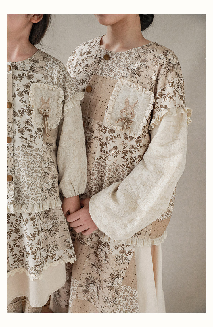 Wulibuyi 소녀의 봄과 가을 조끼 셔츠 만화 자수 스웨터 귀여운 정원 세트 어린이 치마