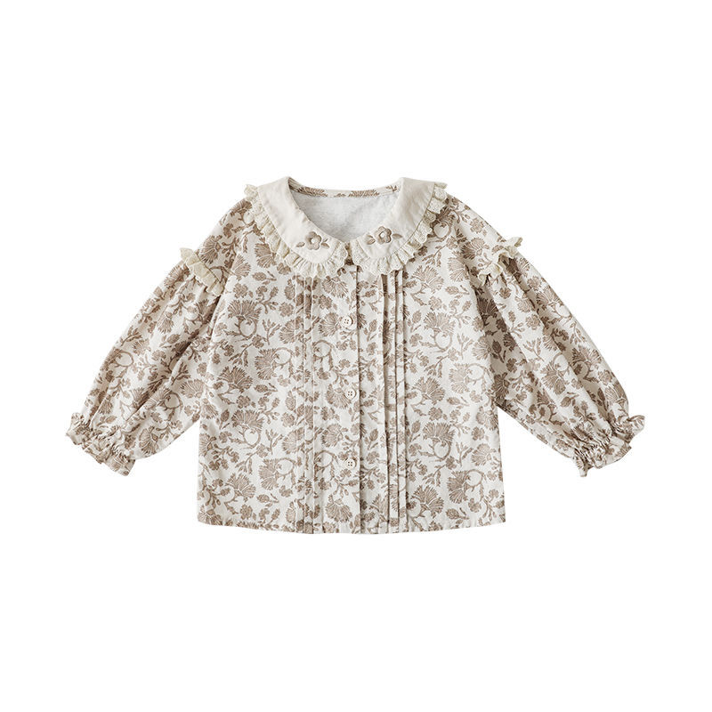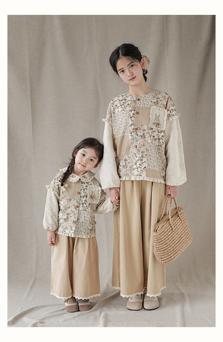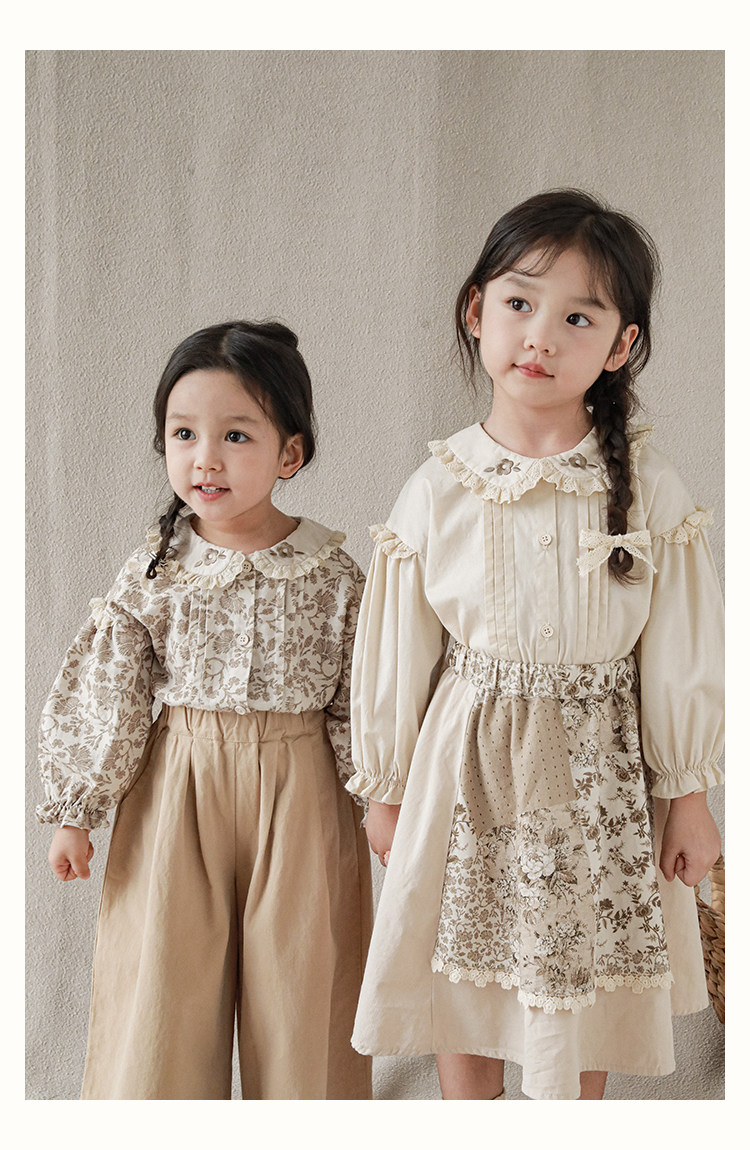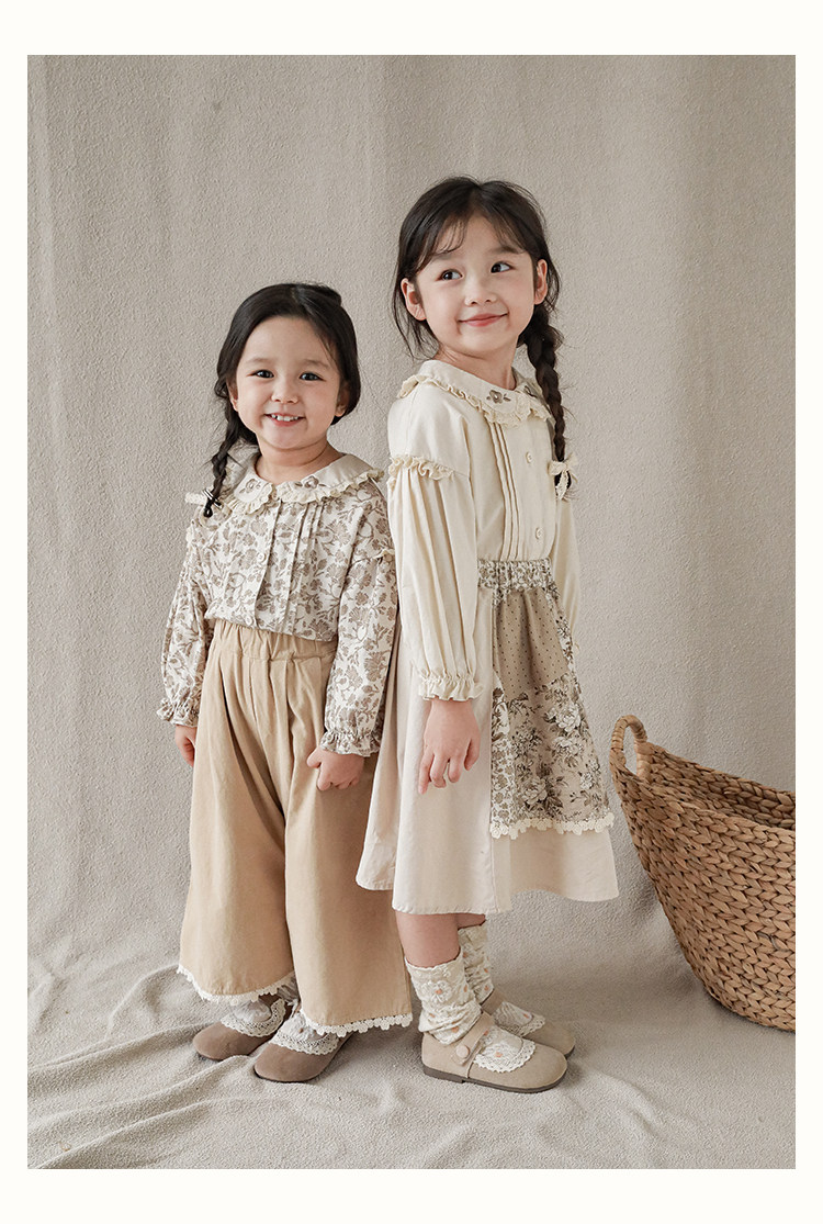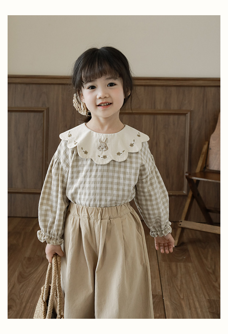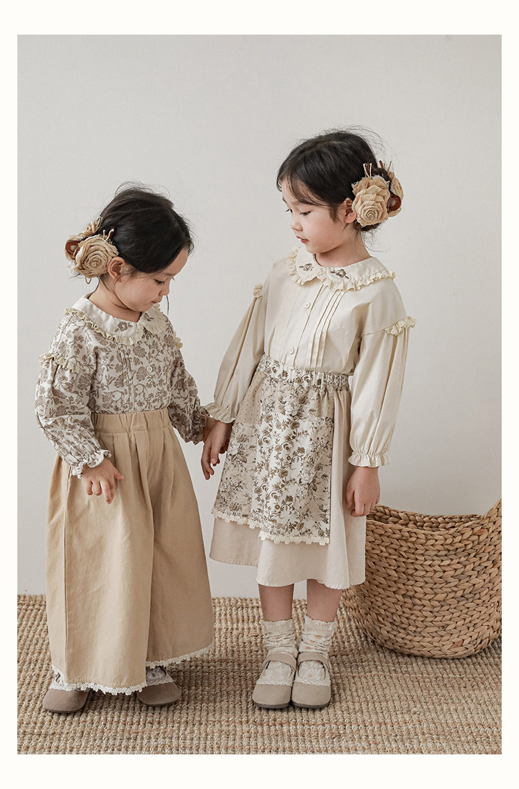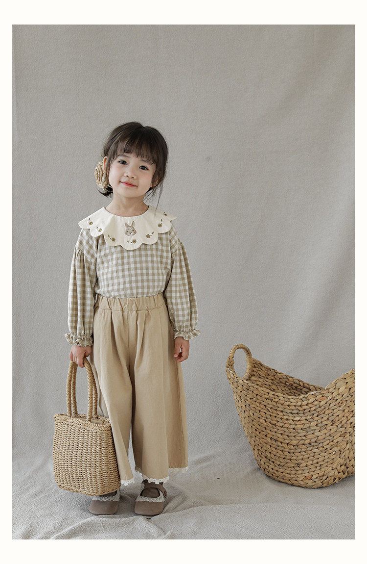 Wulibuyi 소녀의 봄과 가을 조끼 셔츠 만화 자수 스웨터 귀여운 정원 세트 어린이 치마