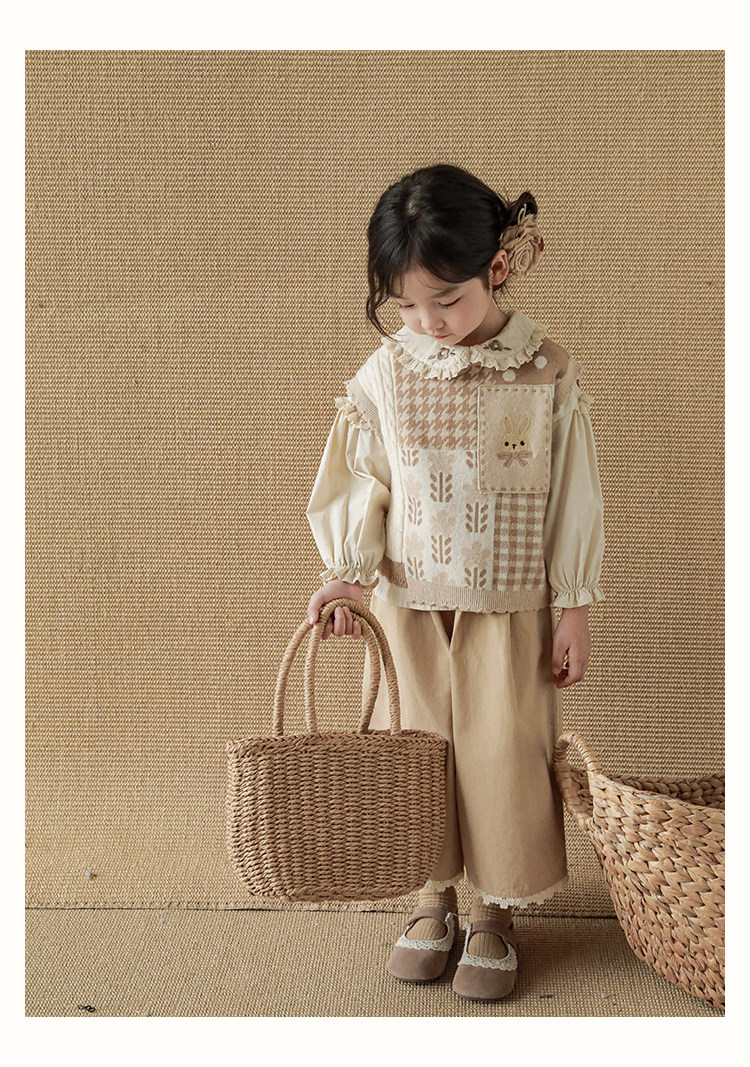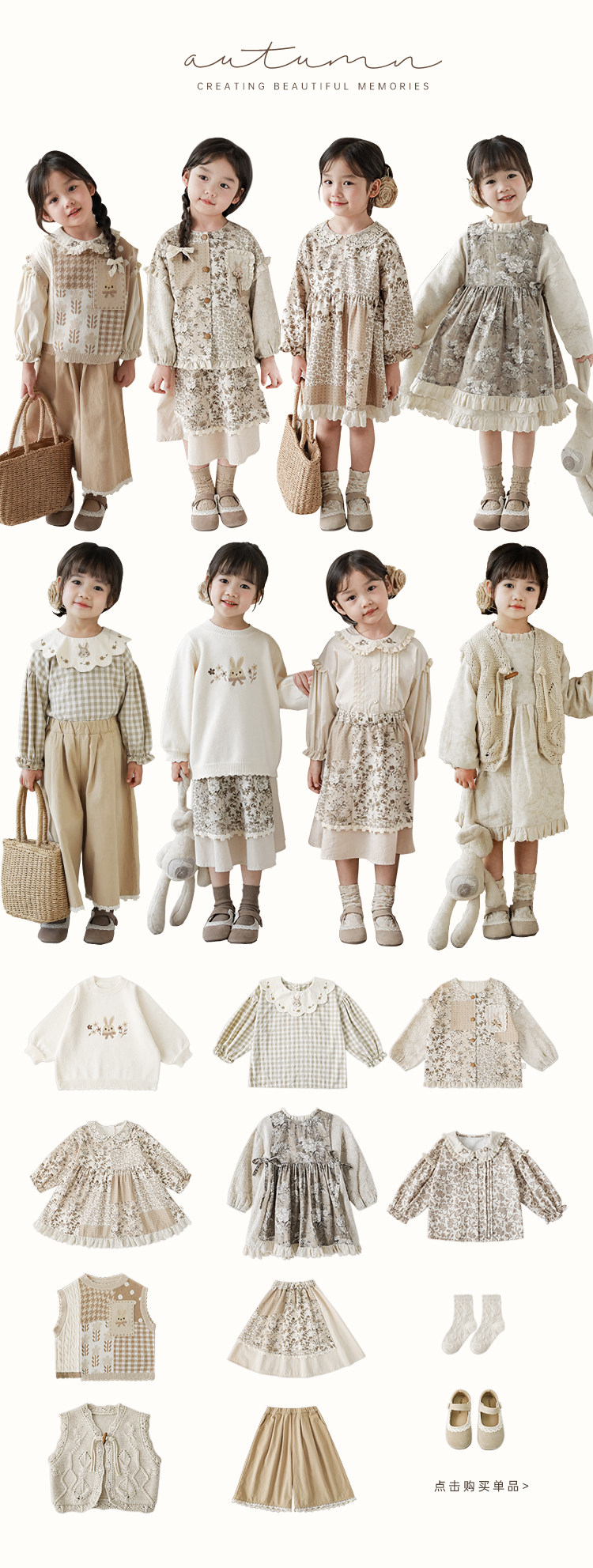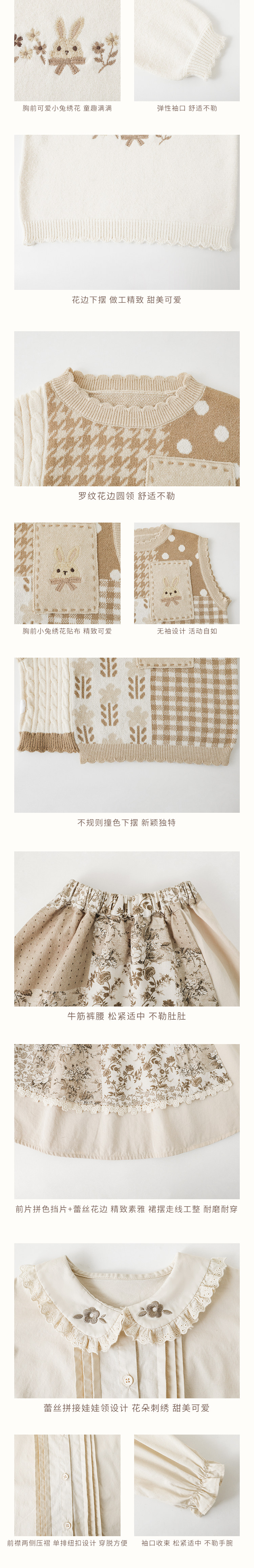 Wulibuyi 소녀의 봄과 가을 조끼 셔츠 만화 자수 스웨터 귀여운 정원 세트 어린이 치마스토어 가기
