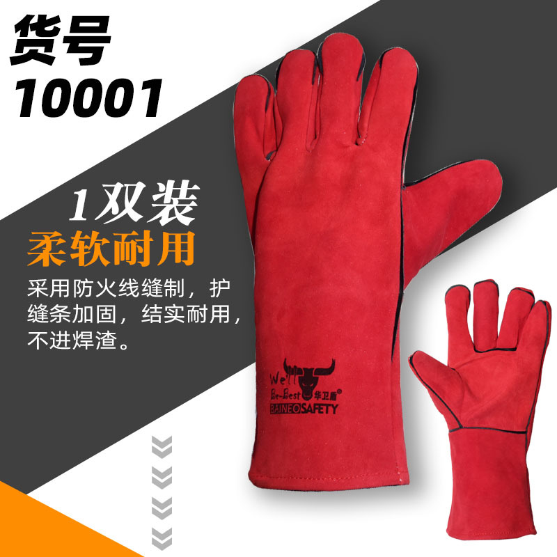 전체 가죽 빨간 용접 장갑 긴 안티 스케일 고온 내성 부드러운 내마모성 용접기 용접 짐승 양 소 가죽 장갑스토어 가기