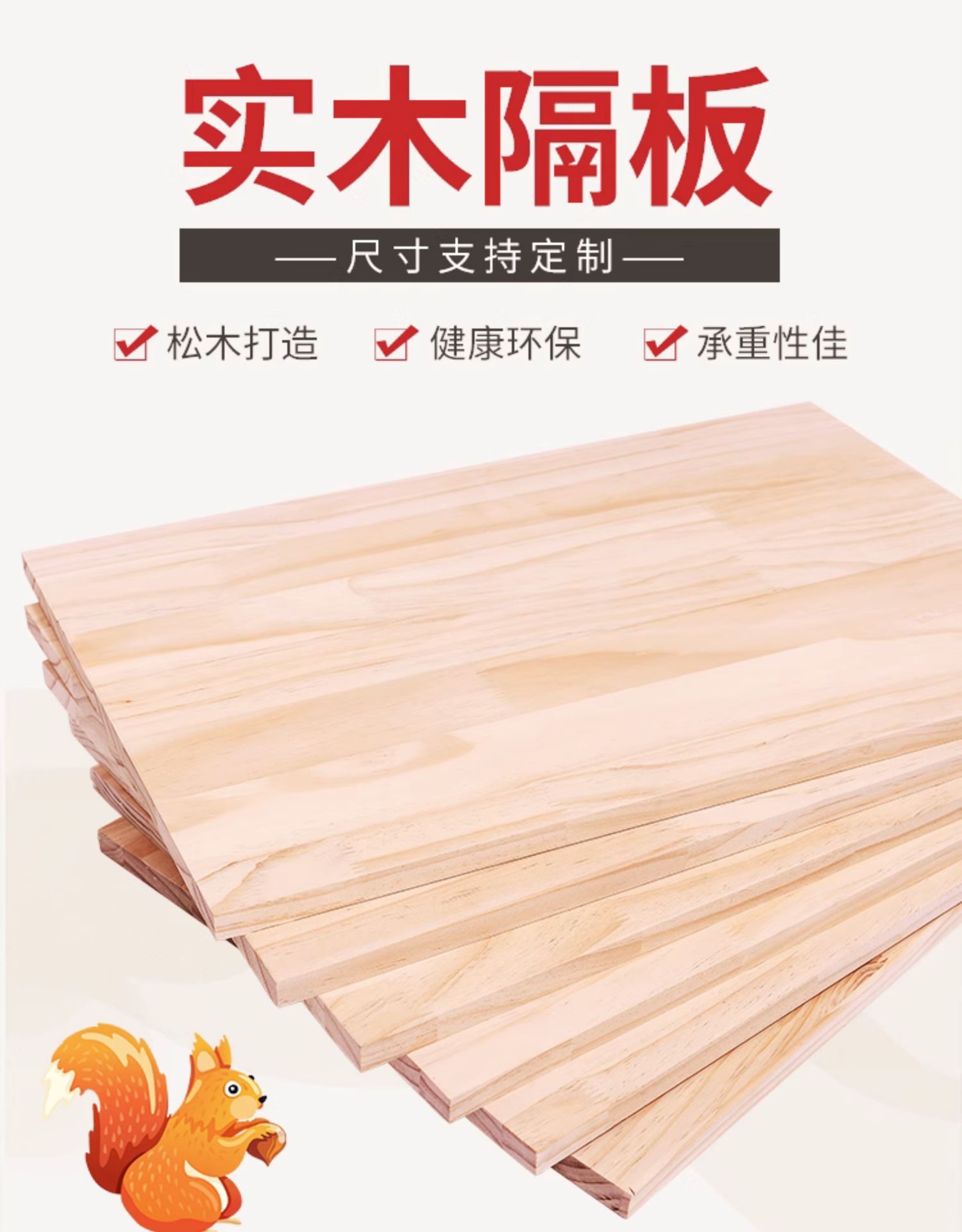 주문 가능한 단단한 나무 판자 시트 소재 한 단어 파티션 벽 선반 옷장 레이어드 보드 테이블 패널 소나무 선반스토어 가기