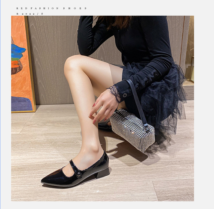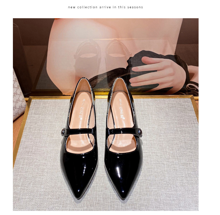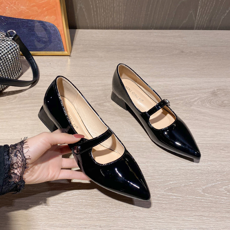 사교계 프랑스 복고풍 페이턴트 가죽 청키 힐 싱글 레이어 신발 2024 봄과 가을 새로운 요정 신발 우아한 메리 제인 신발스토어 가기