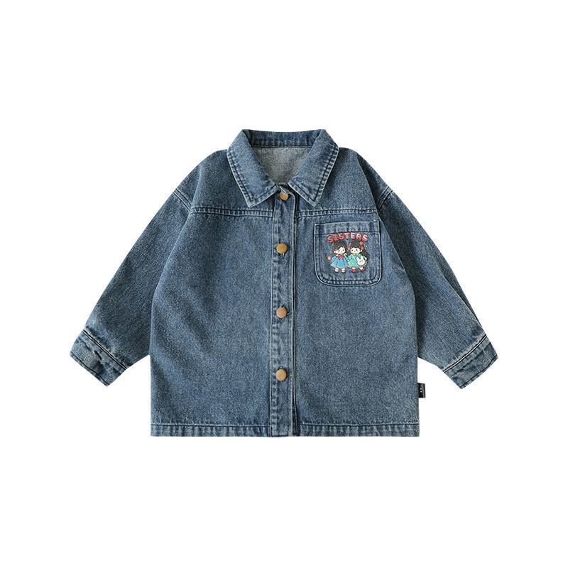 Wulibuyi 소녀 데님 코트 봄과 가을 유행 다재다능한 어린이 만화 긴팔 티셔츠 복고풍 체크 무늬 스커트스토어 가기