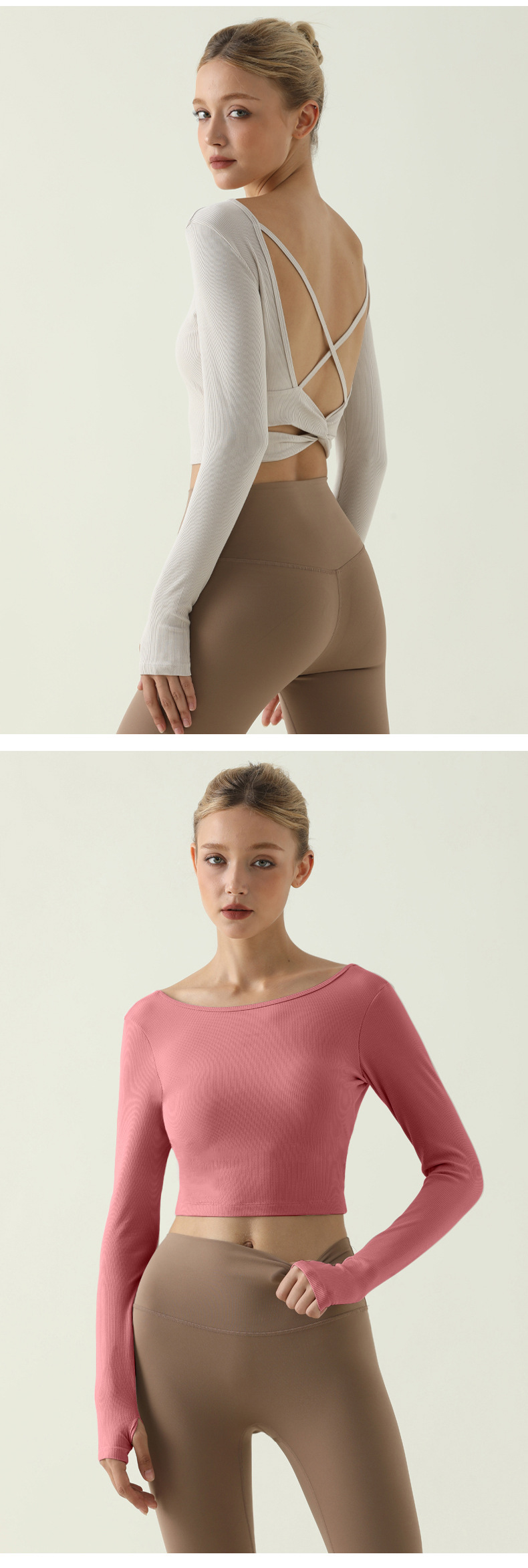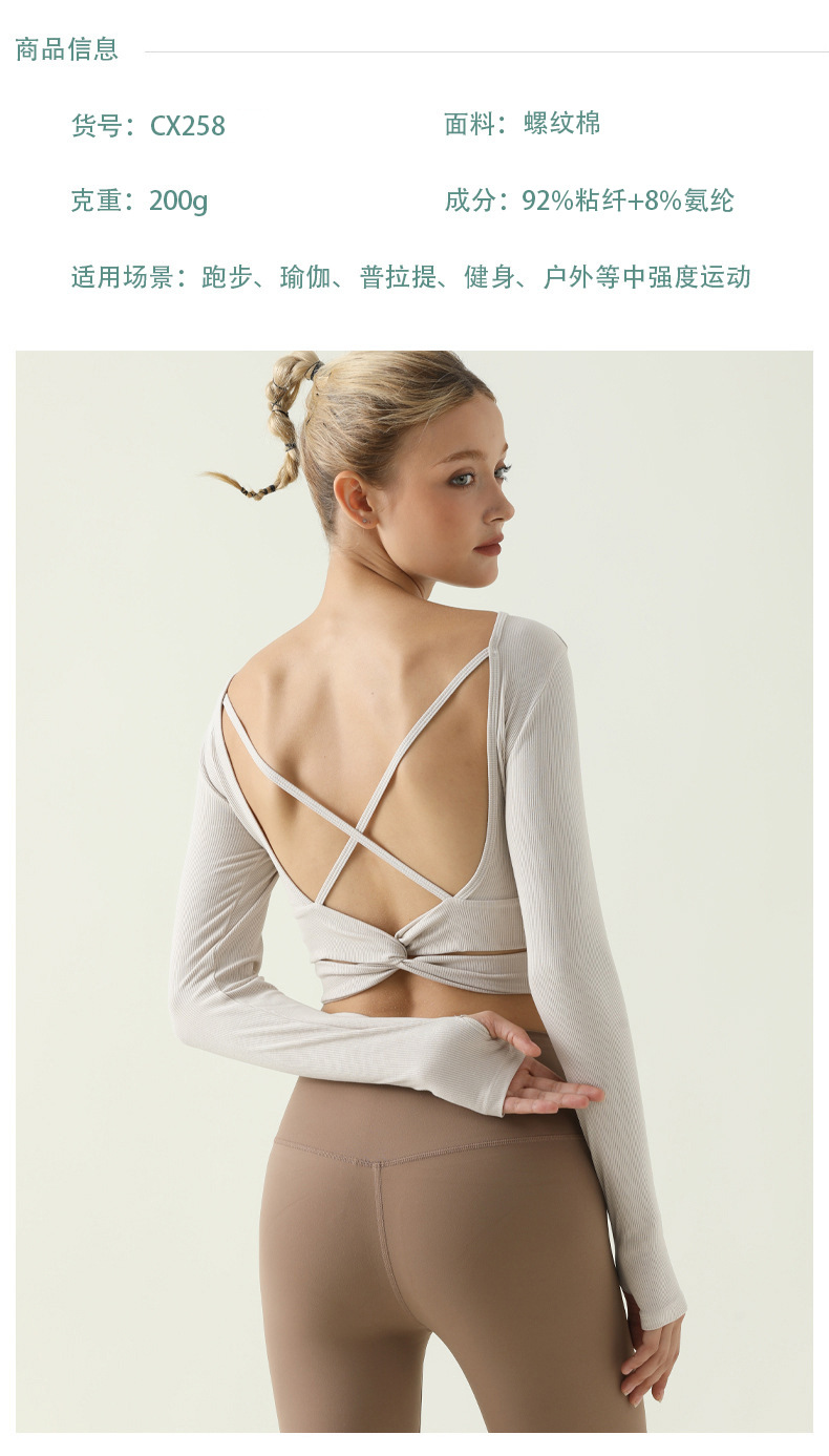가을 신상 하이엔드 크로스백 요가복, 긴팔, 일체형 가슴 패드, 고탄성 런닝 피트니스 탑