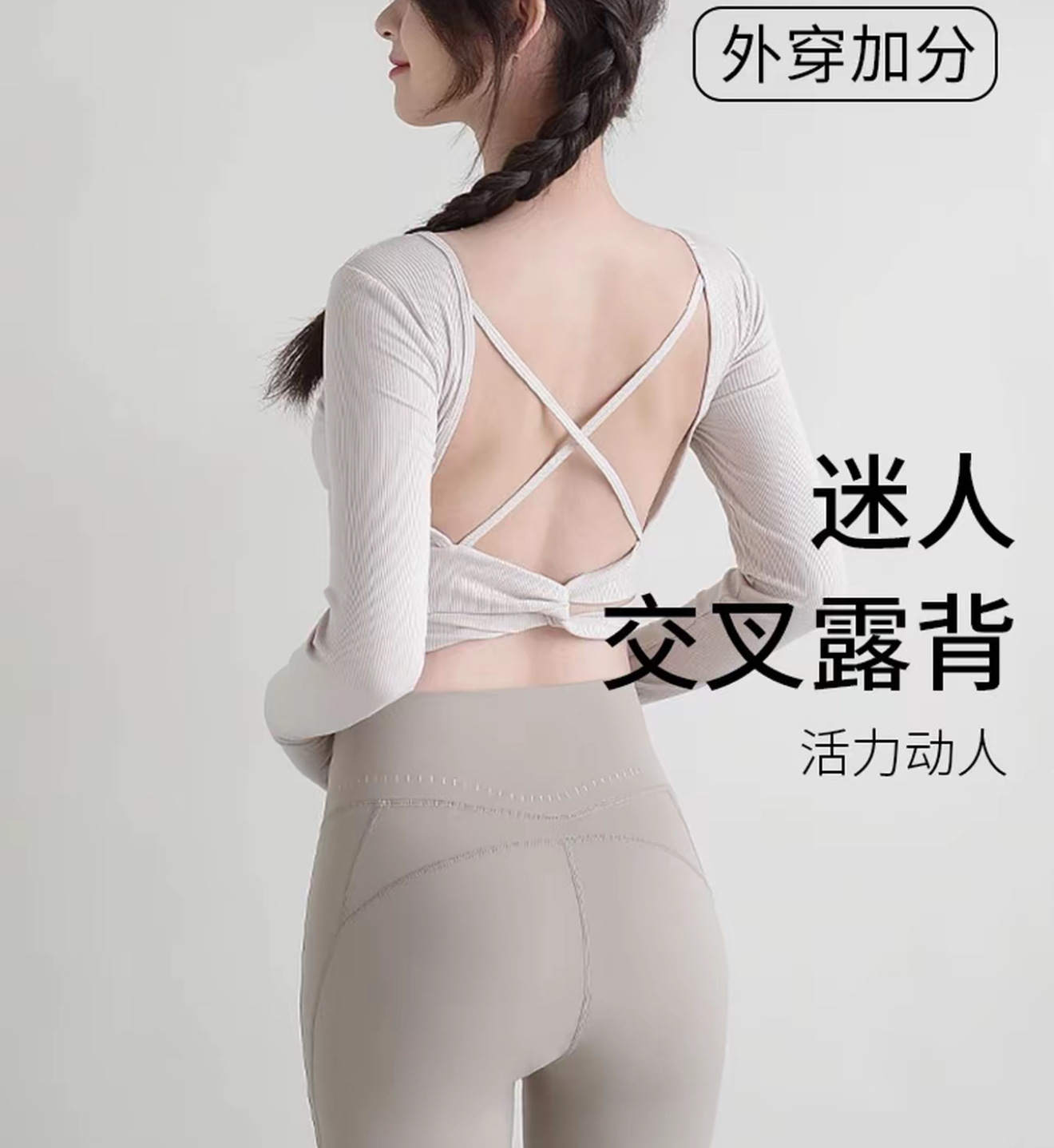 가을 신상 하이엔드 크로스백 요가복, 긴팔, 일체형 가슴 패드, 고탄성 런닝 피트니스 탑스토어 가기