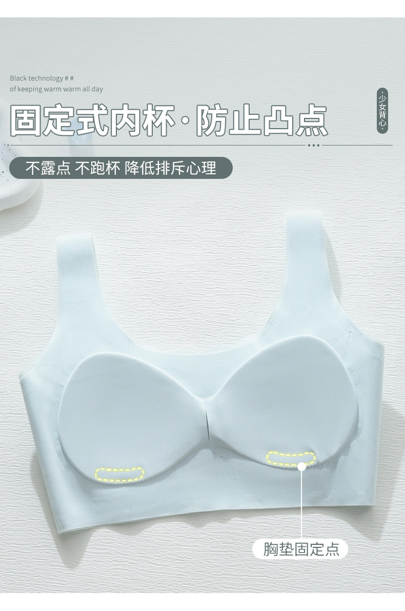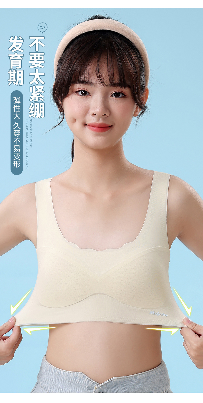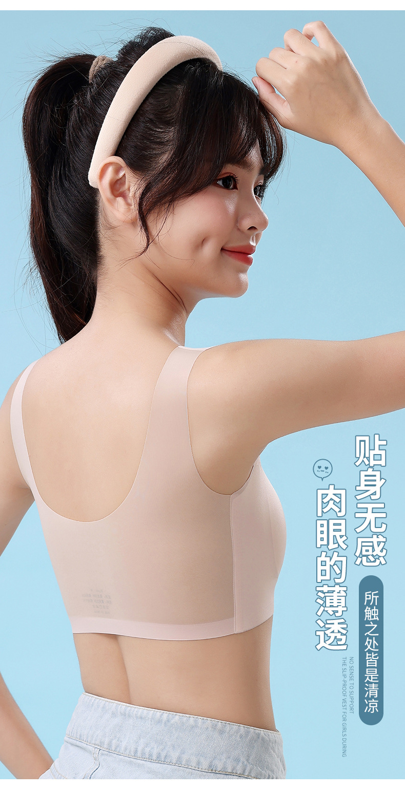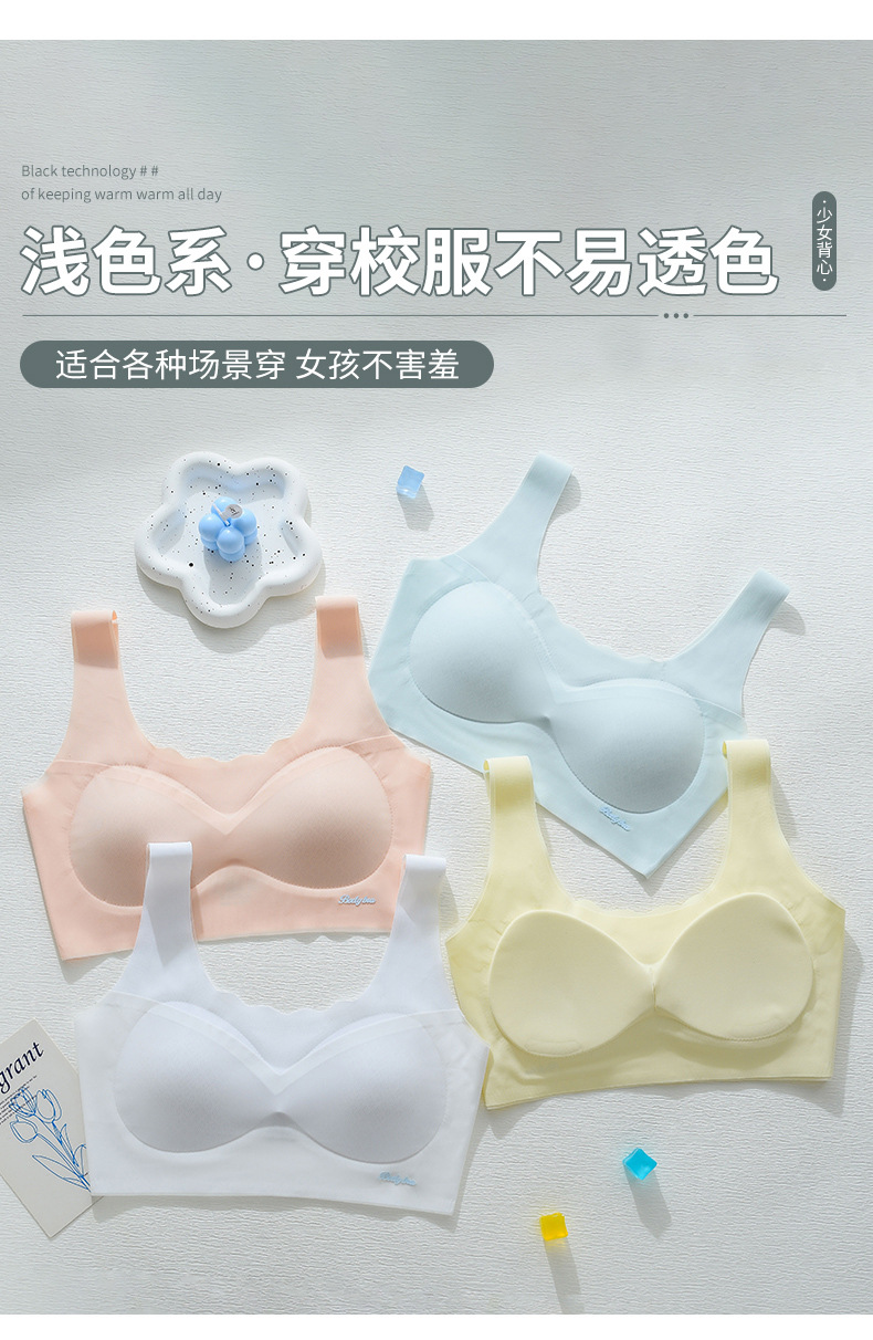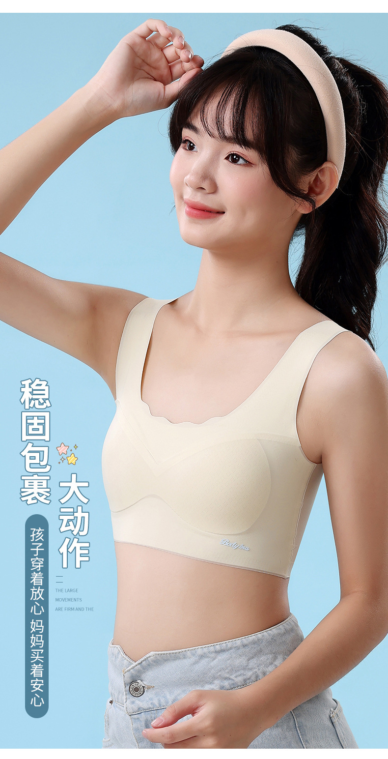 중학생을위한 소녀 스포츠 속옷, 2 단계 고정 컵 브래지어, 원활한 초박형 조끼스토어 가기