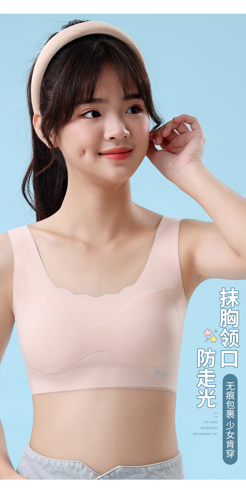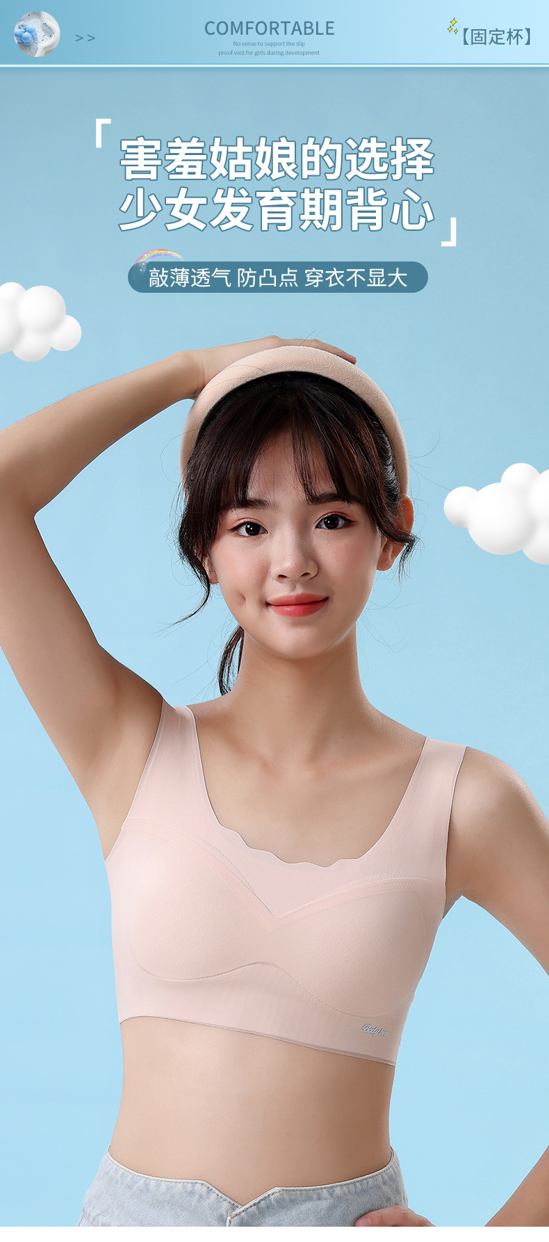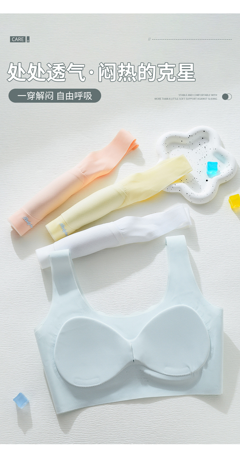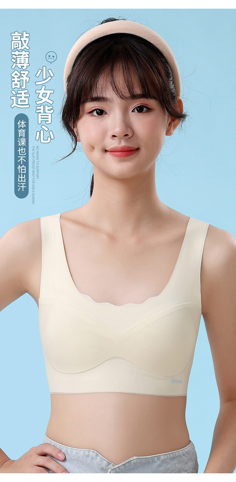 중학생을위한 소녀 스포츠 속옷, 2 단계 고정 컵 브래지어, 원활한 초박형 조끼스토어 가기
