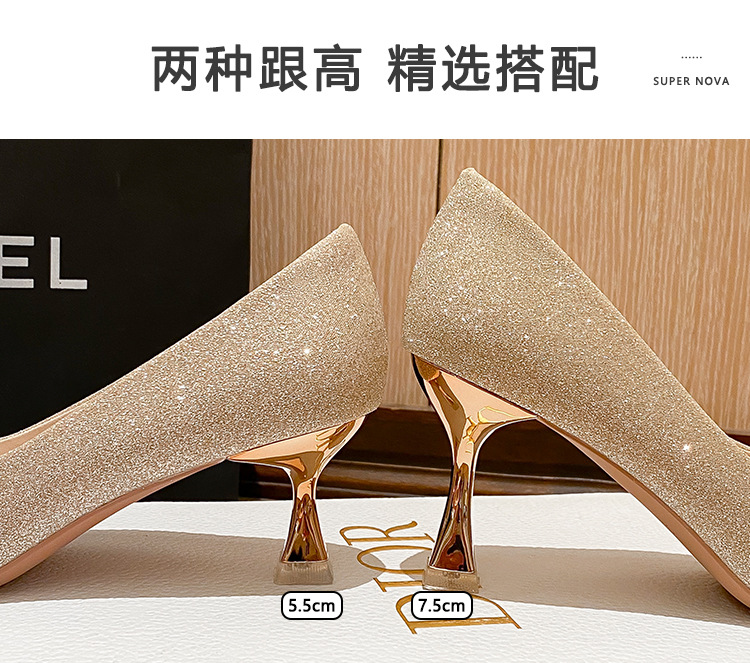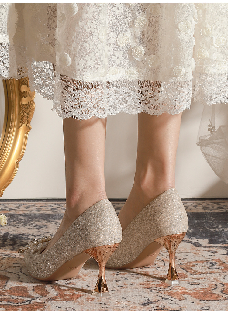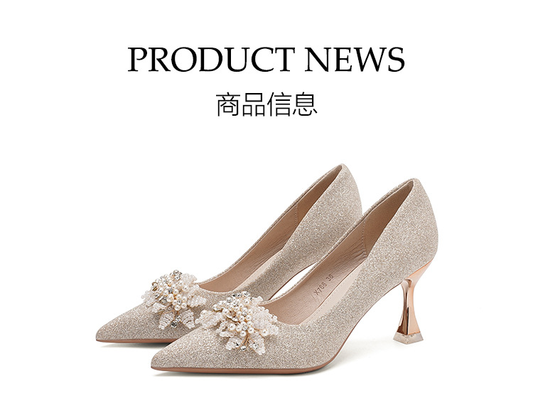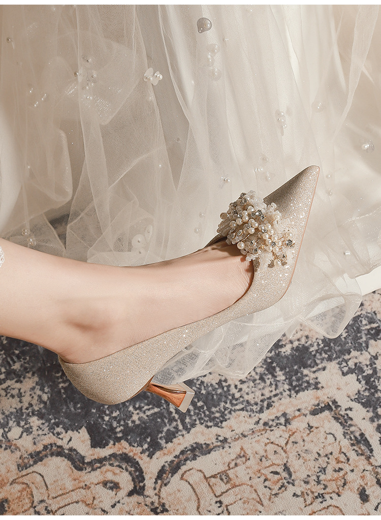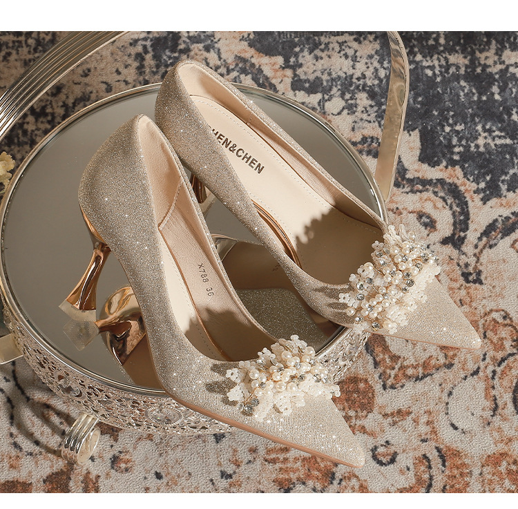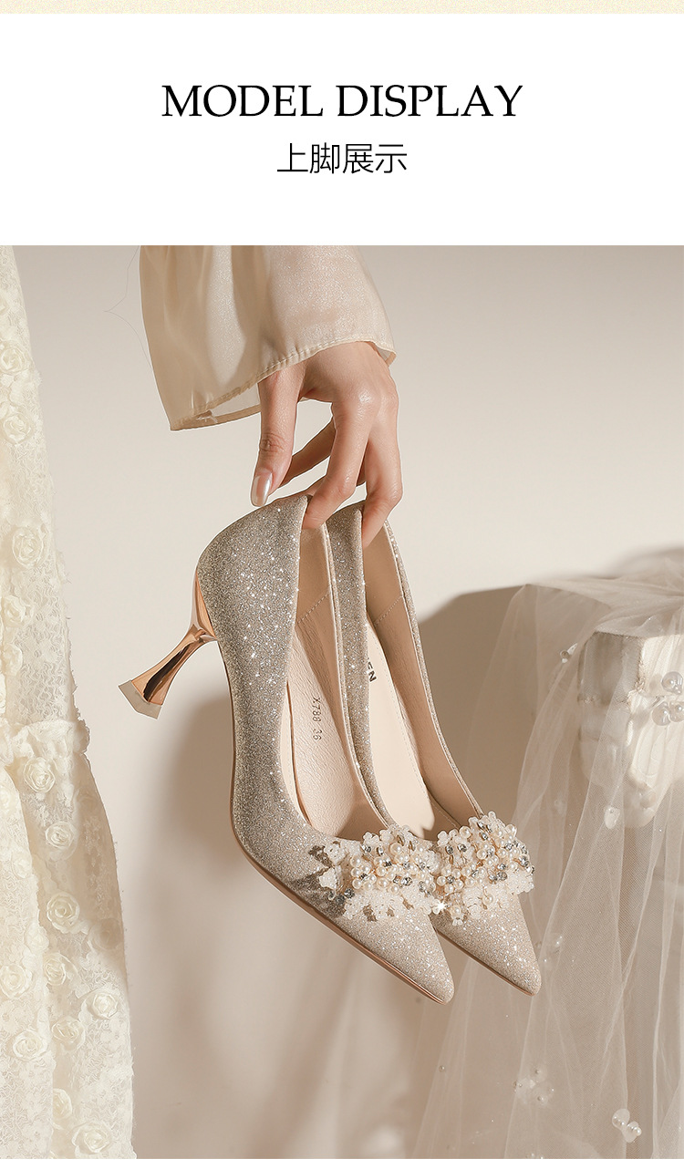 X788-18 결혼식 신발 여성 샴페인 헥시우 결혼식 원피스 뾰족한 하이힐 신부 신발 올 매칭 플러스 사이즈 플러스 사이즈 40-43
