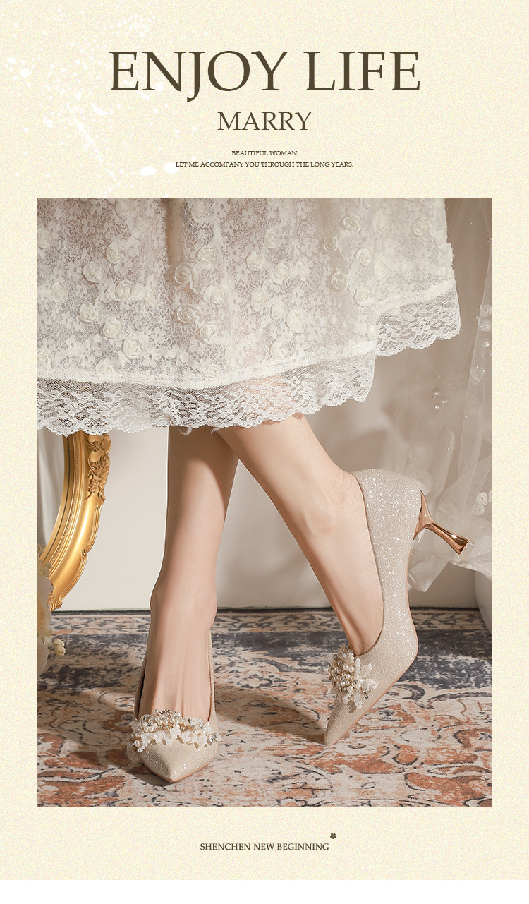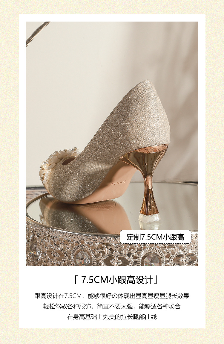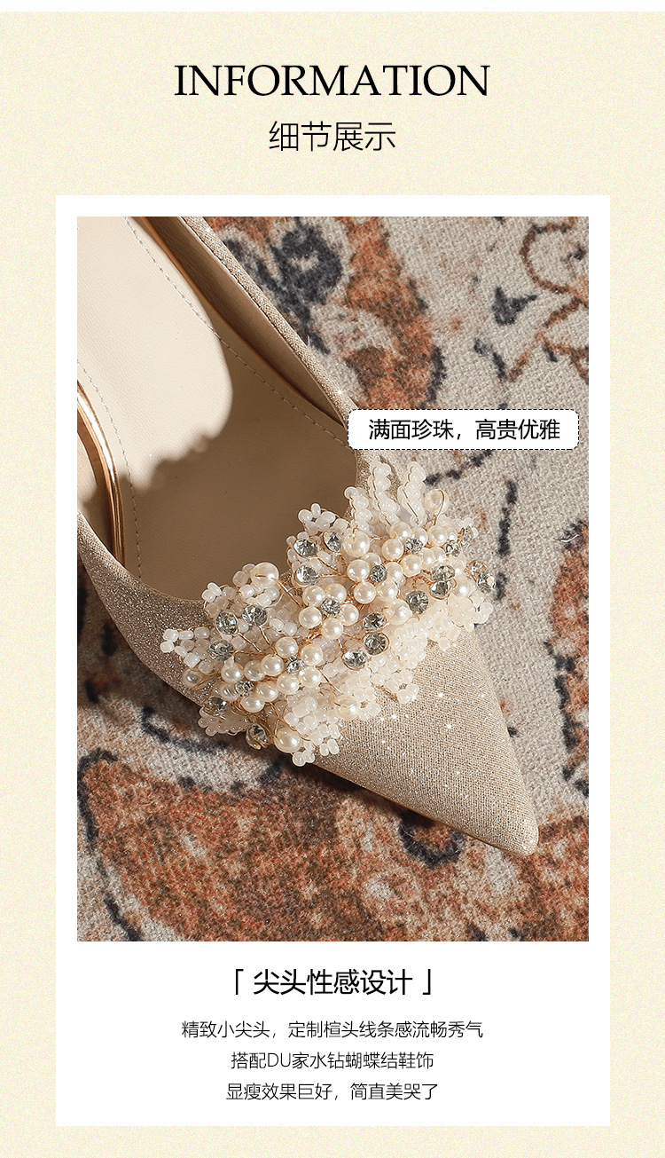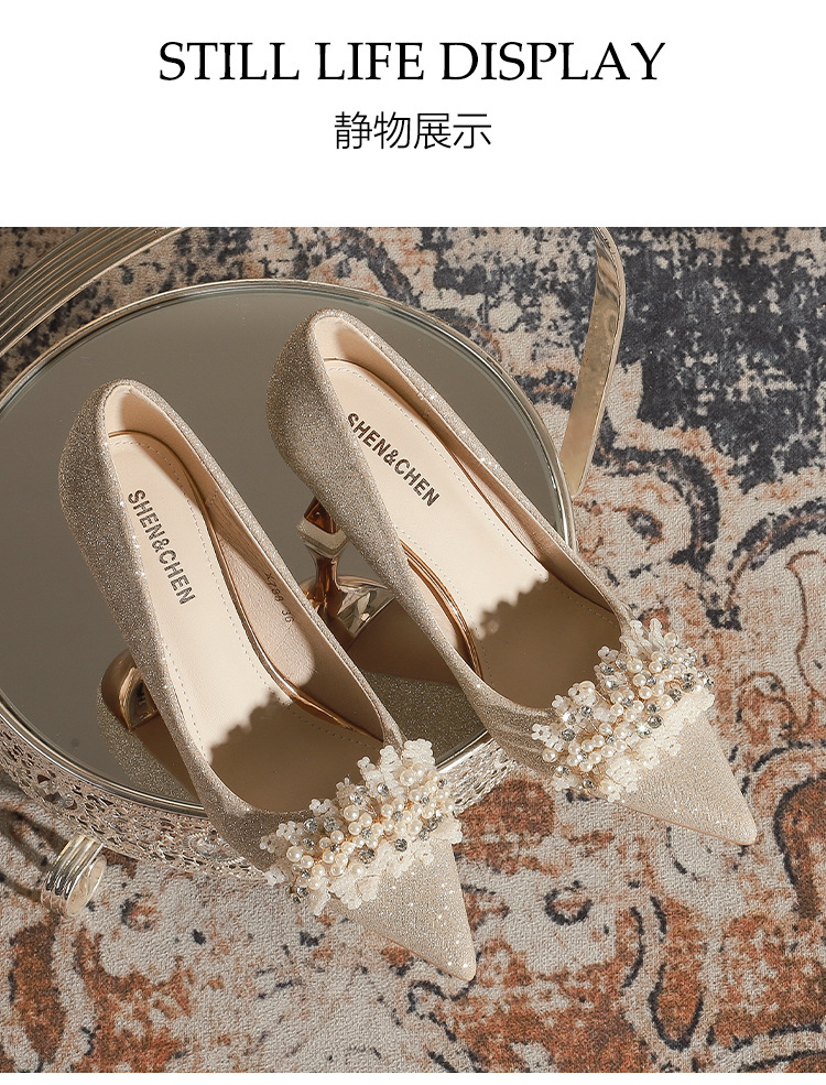 X788-18 결혼식 신발 여성 샴페인 헥시우 결혼식 원피스 뾰족한 하이힐 신부 신발 올 매칭 플러스 사이즈 플러스 사이즈 40-43