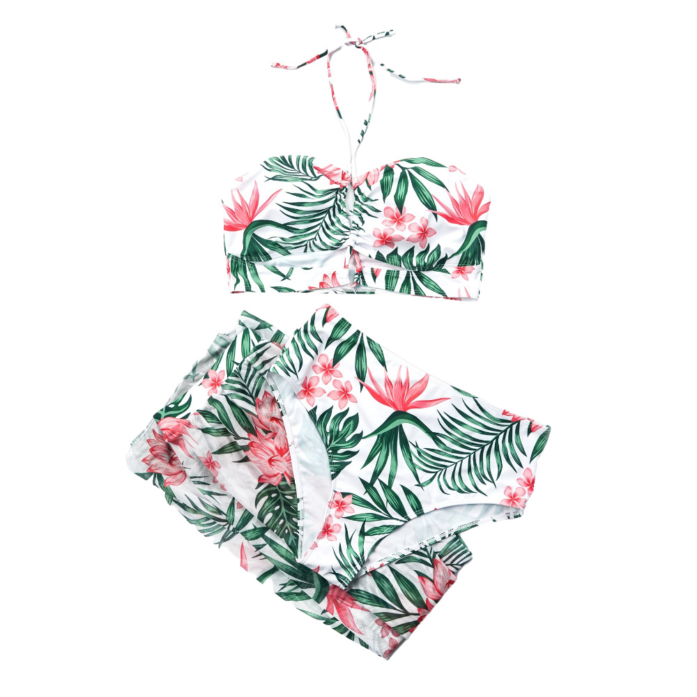 유럽과 미국의 국경 간 새로운 플러스 사이즈 수영복, 여성스러운 딥 V 슬리밍 스커트, 하이 웨이스트 비키니 3피스 세트