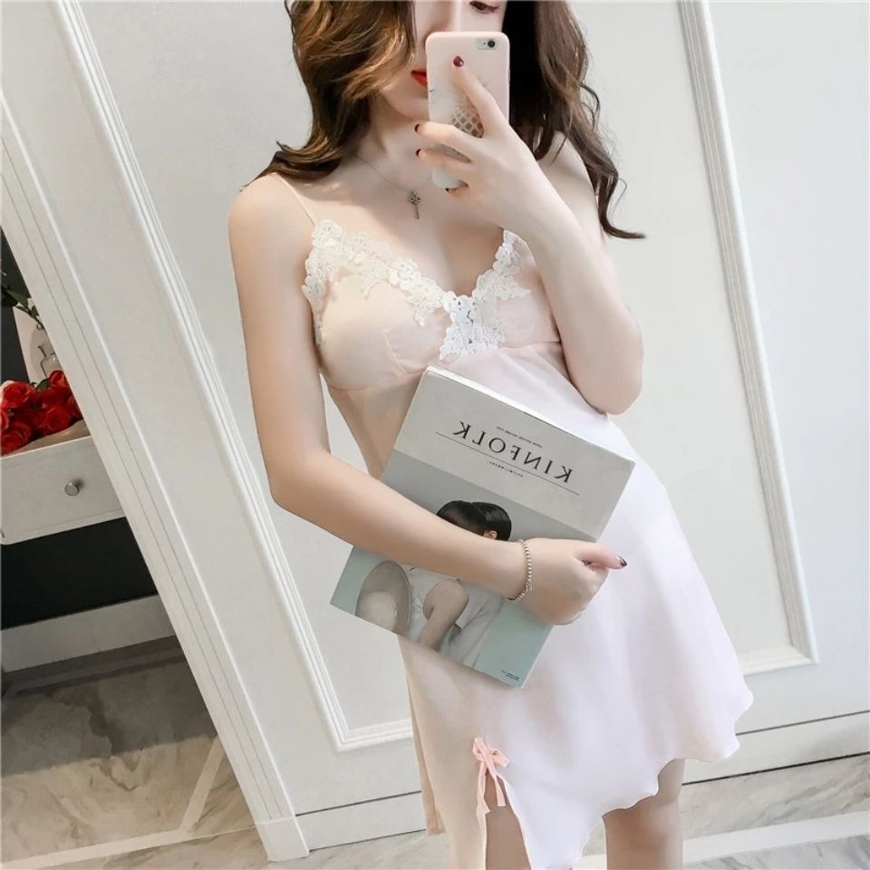 2024 새로운 여름 섹시한 잠옷 여성 스트랩 나이트 드레스 레이스 재미있는 짧은 치마 매력적인 로우 컷 나이트 클럽스토어 가기