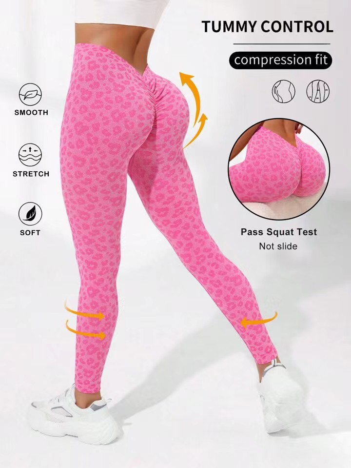 38가지 컬러 핫 스타일 V 웨이스트 샌드 워시 레오파드 프린트 심리스 요가 팬츠 하이 웨이스트 힙 리프팅 피트니스 팬츠 스포츠 바지 레깅스