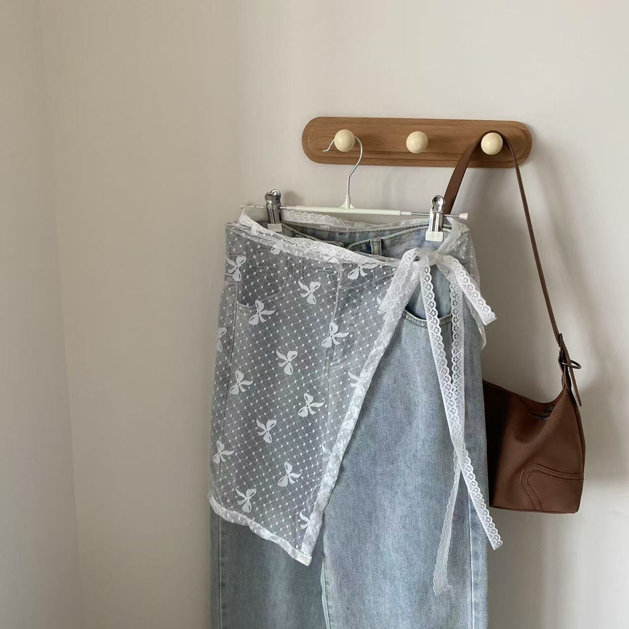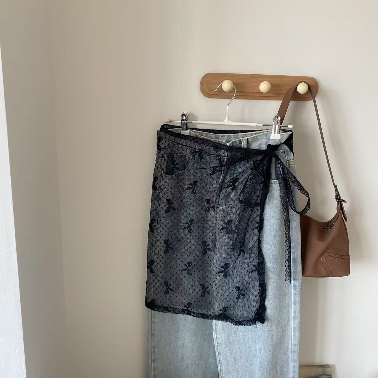 2024 새로운 Ins Blogger 같은 스타일 레이스 폴드 원피스 틈새 방귀 커튼 레이스 스파이스 걸 일치하는 앞치마 절반