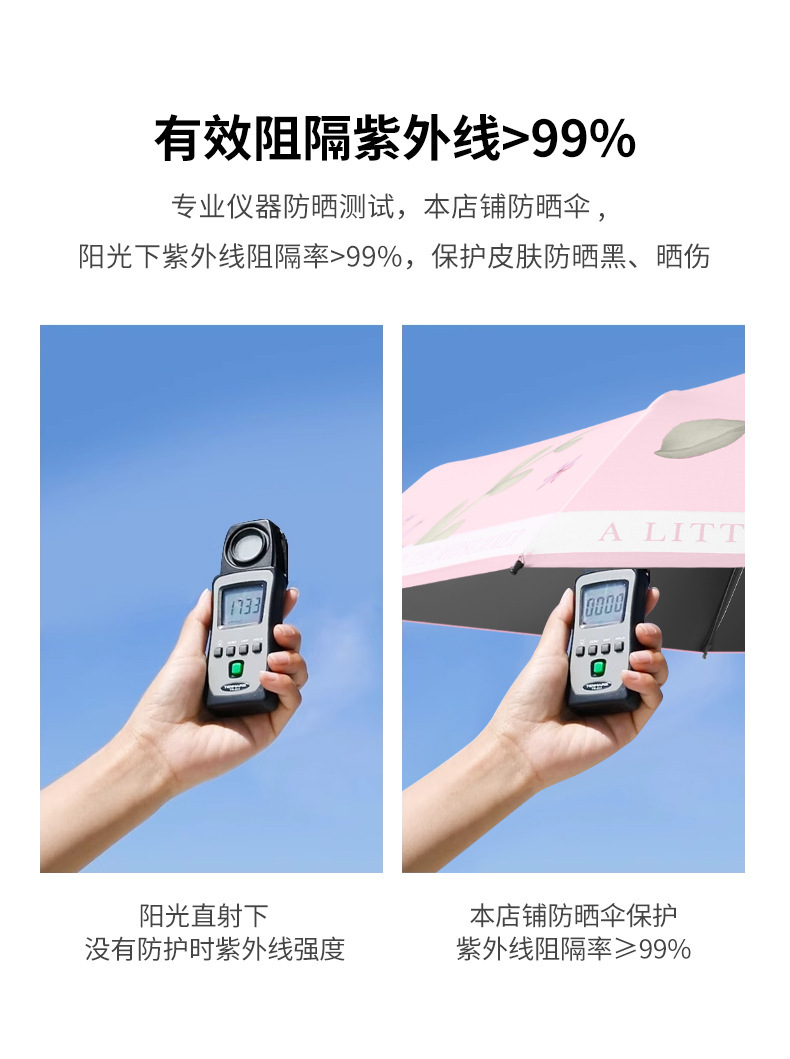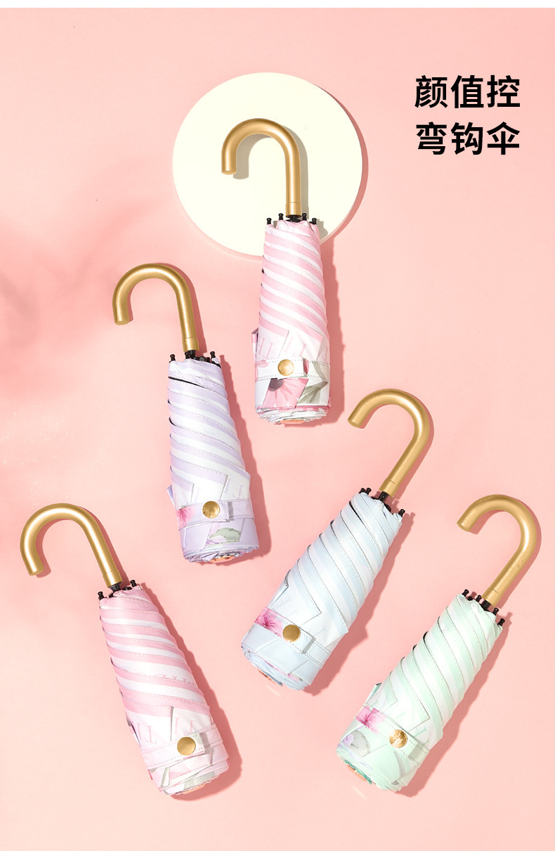 2024 새로운 50% 작은 후크 선 스크린 우산 숙녀 UV 차양 UPF50 미니 우산 머리카락 세대스토어 가기