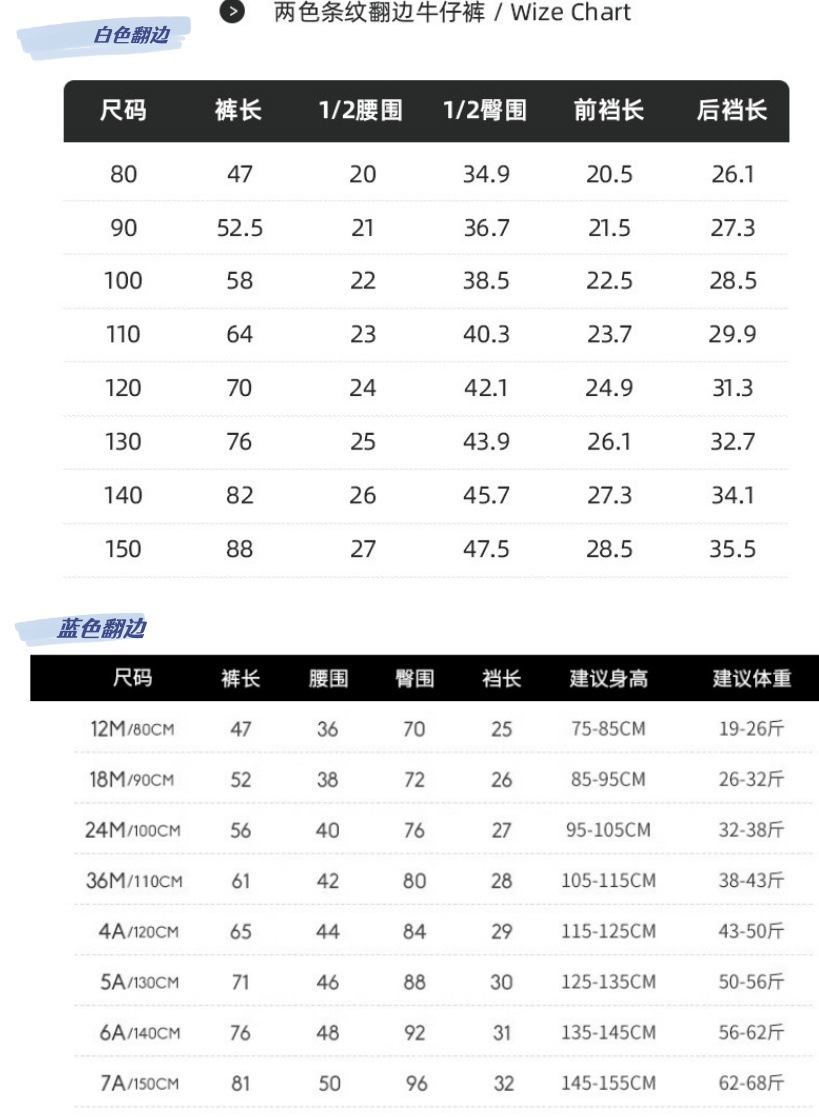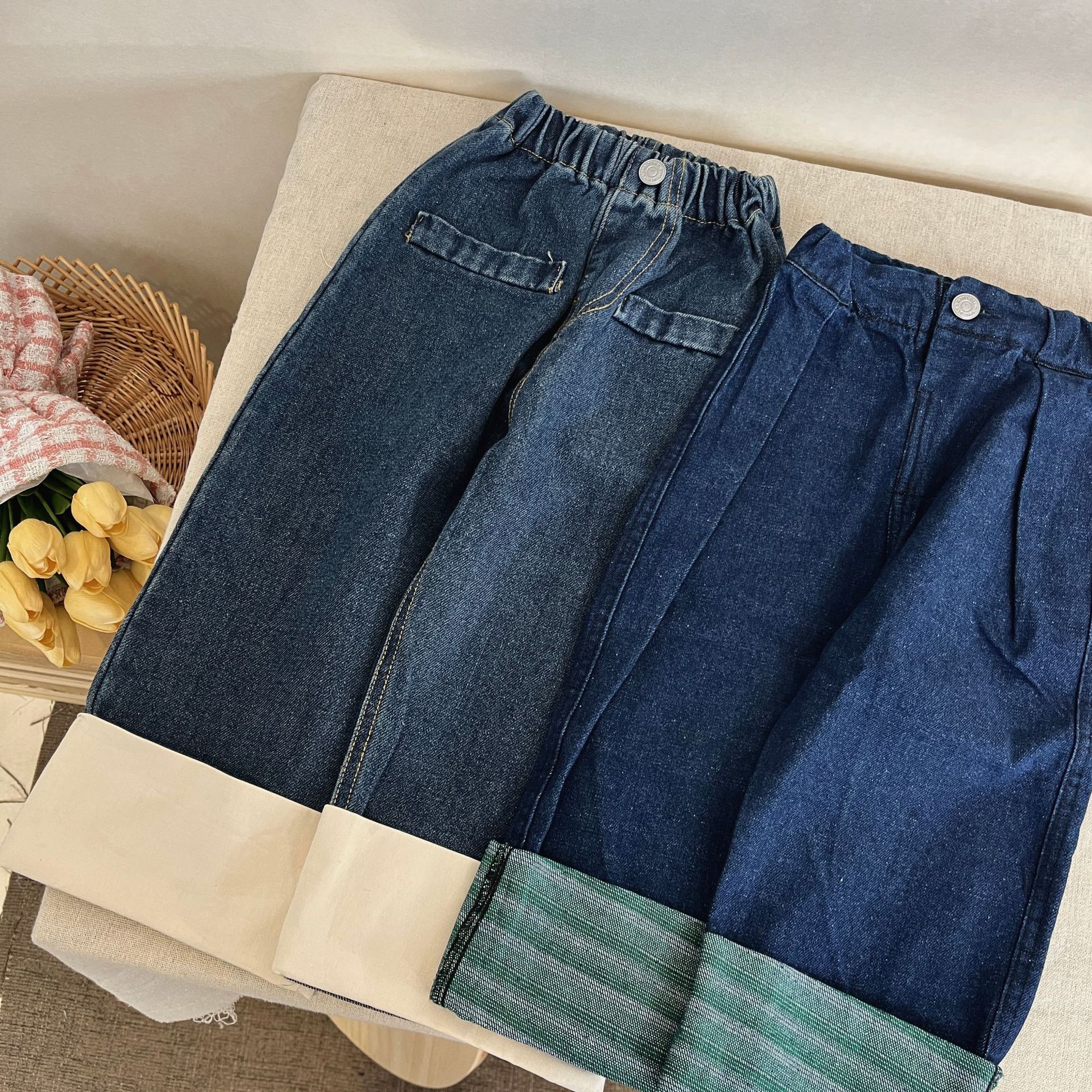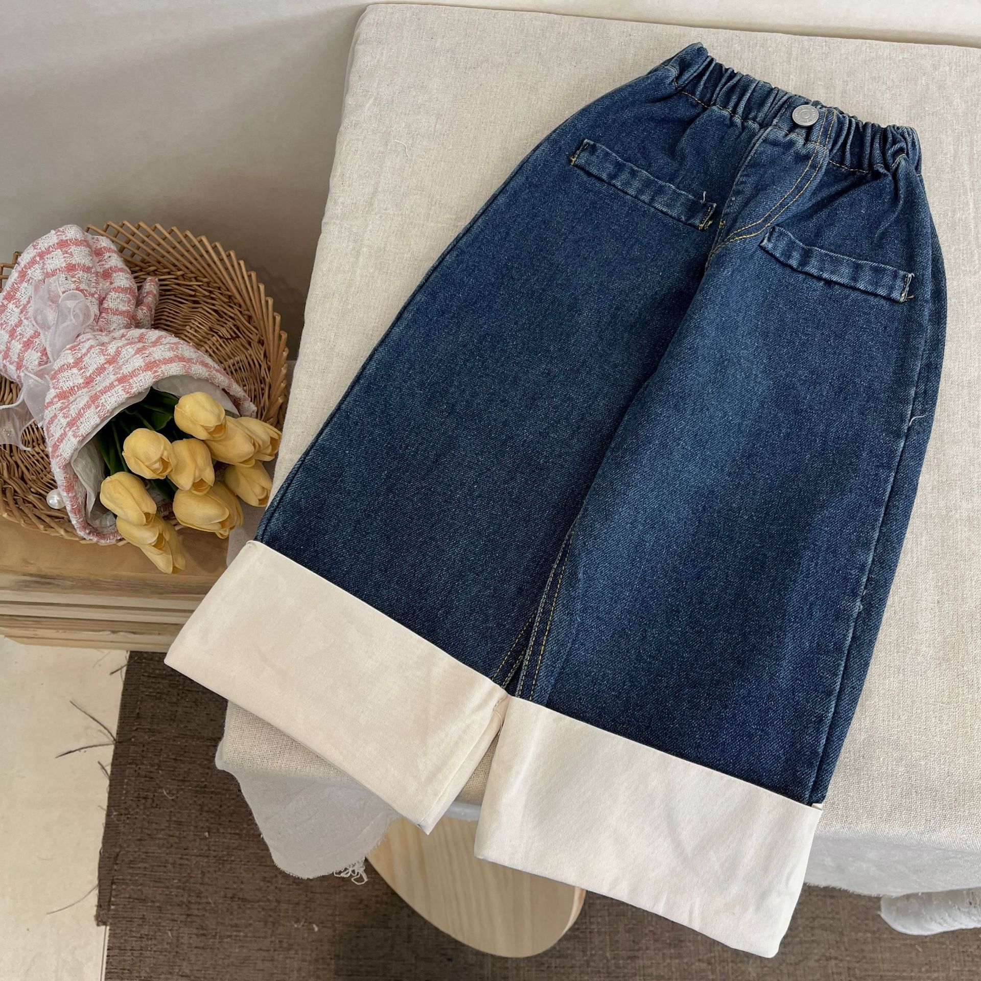 재고 정리~ 아동용 밑단 접이식 데님 팬츠 유치원용 다용도 부드러운 데님 밑단 접이식 스트라이프 긴바지 트렌디스토어 가기
