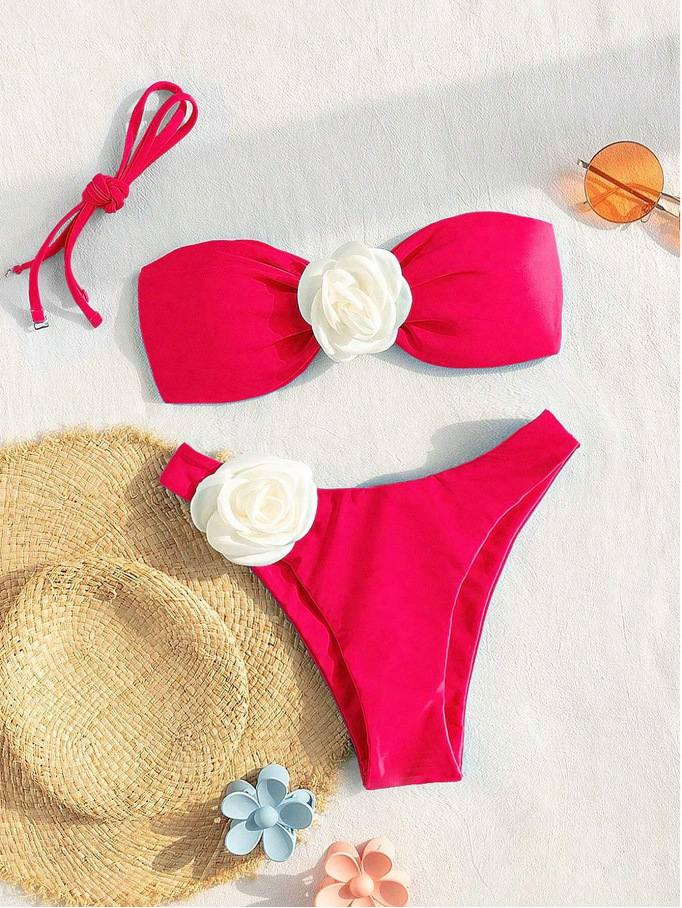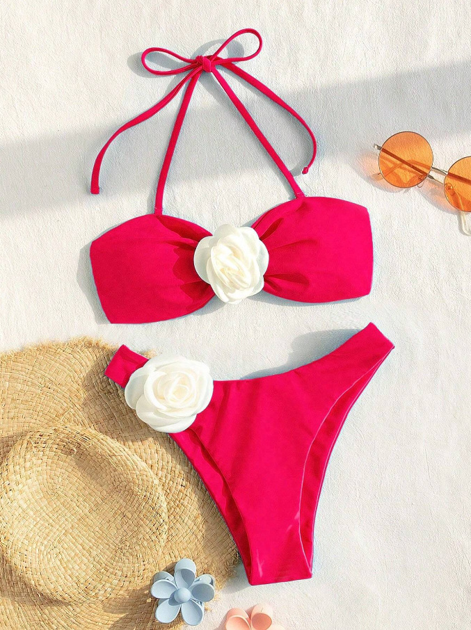 2024 새로운 3 차원 꽃 스플릿 수영복 여성 패션 섹시한 크로스 보더 라자다 비치 휴가 비키니 수영복스토어 가기