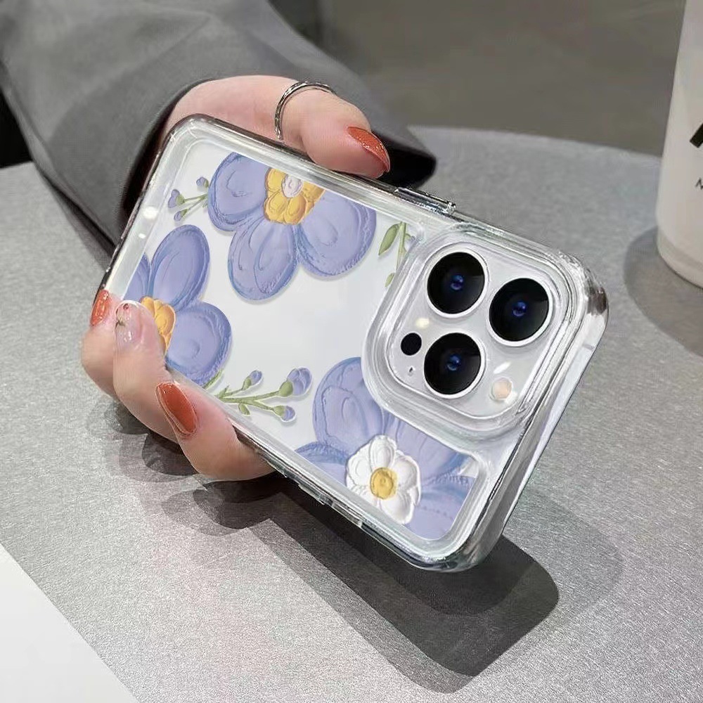 유화 블루 플라워 디자인 15pro 애플 17promax 휴대폰 케이스 아이폰16 크로스보더 14pro 소녀 13