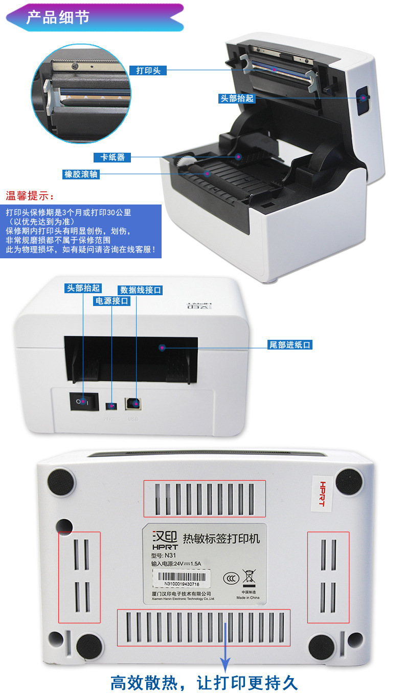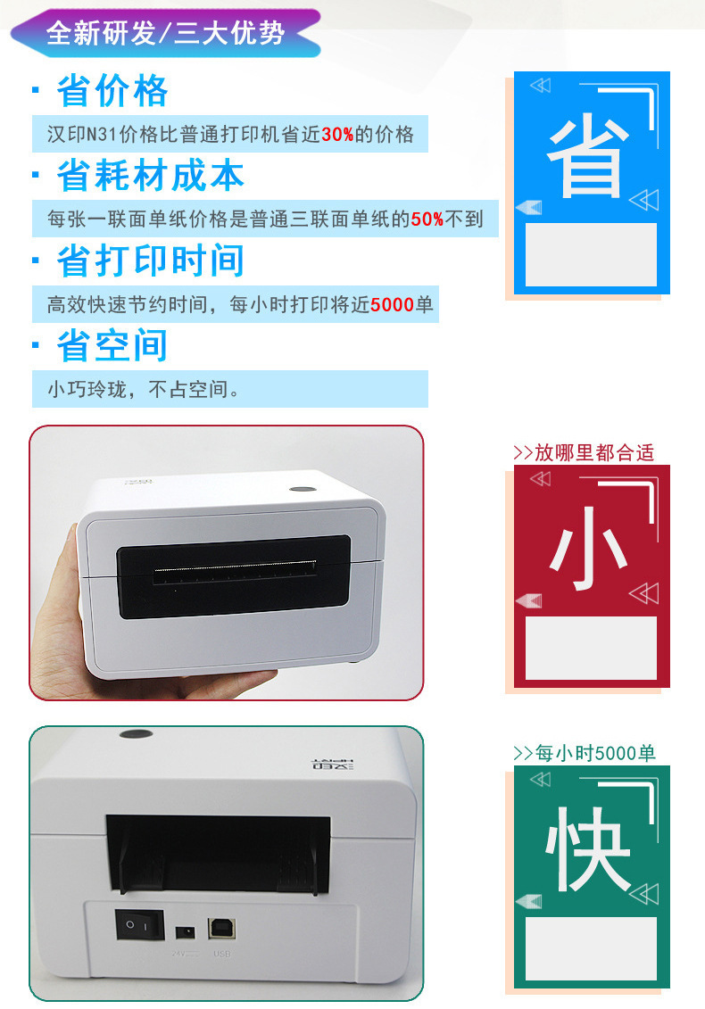 Hanyin N31/N41/N51 원피스 익스프레스 티켓 프린터 바코드 자체 접착 블루투스 전자 표면 단일 기계