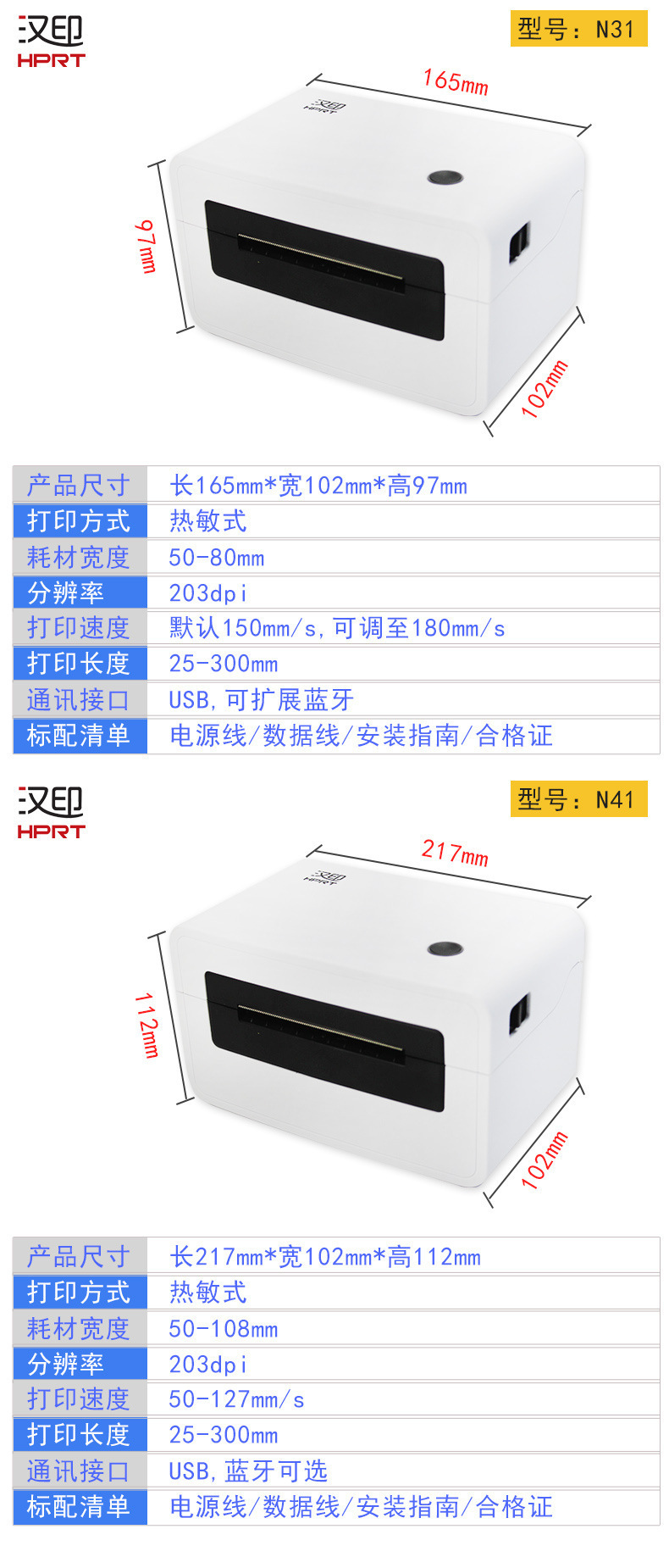 Hanyin N31/N41/N51 원피스 익스프레스 티켓 프린터 바코드 자체 접착 블루투스 전자 표면 단일 기계스토어 가기