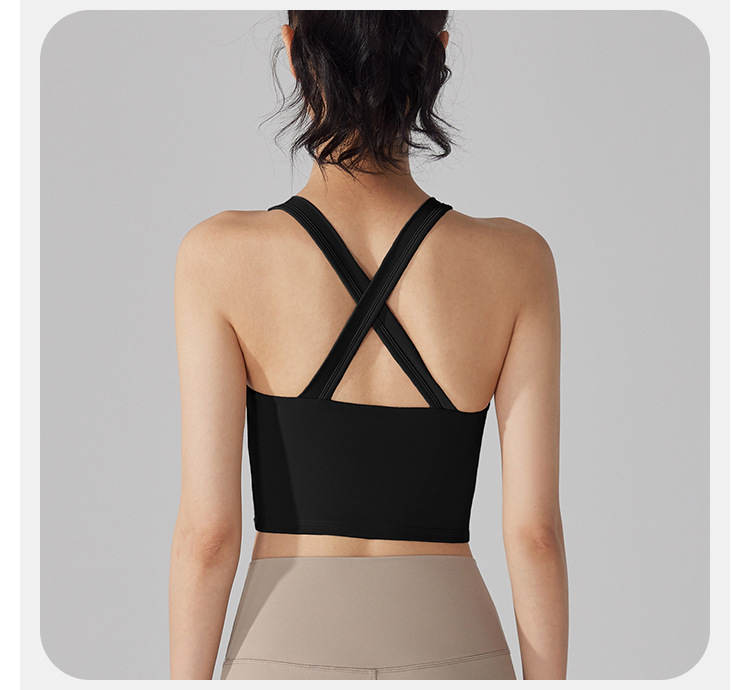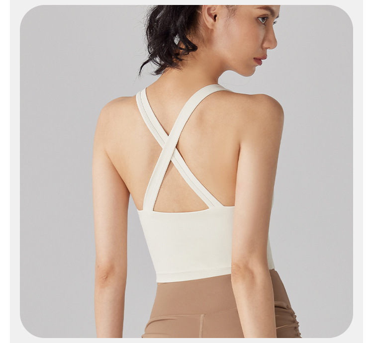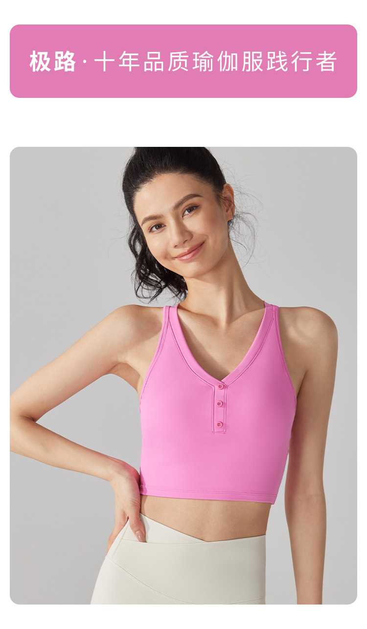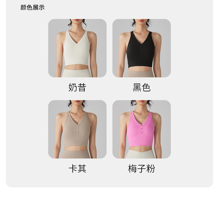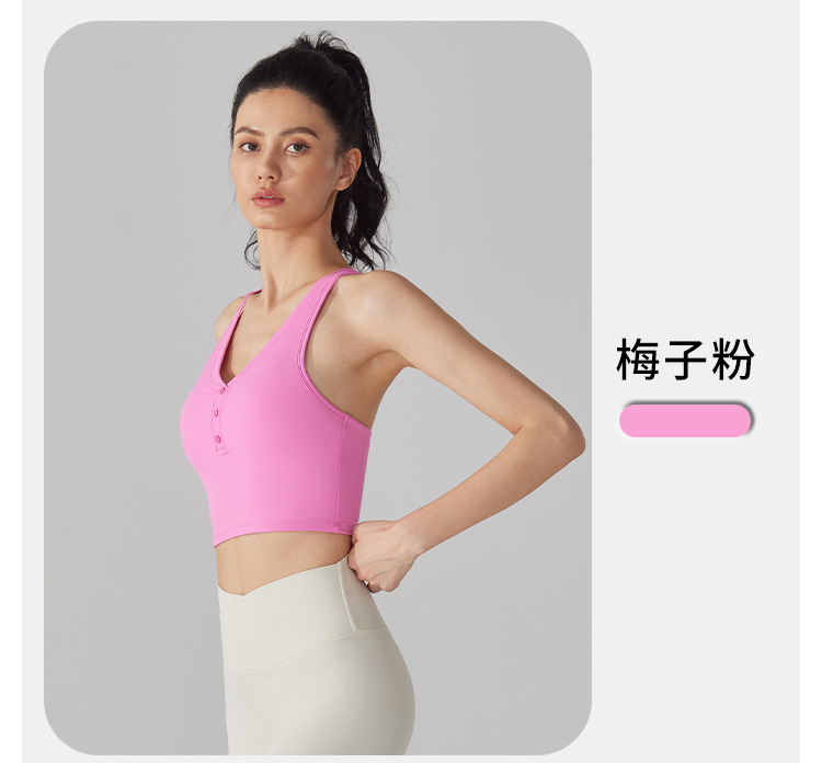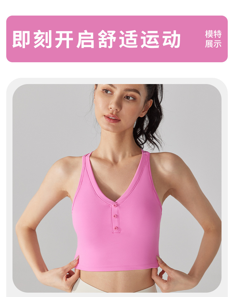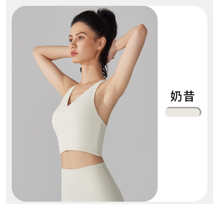 여성을위한 가슴 패드 충격 방지 크로스 백 브라 요가 의류 최고 피트니스 조끼가있는 여름 V 넥 버튼 스포츠 조끼스토어 가기