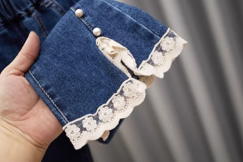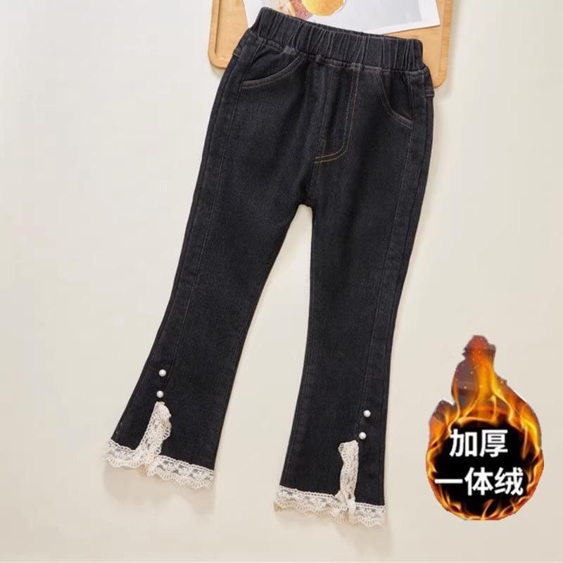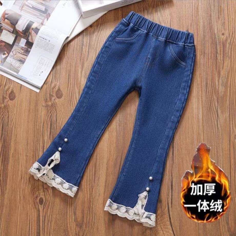오리지널 품질 [원피스 벨벳] 소녀 기모 청바지 가을과 겨울 유행 캐주얼 플레어 바지 아동복
