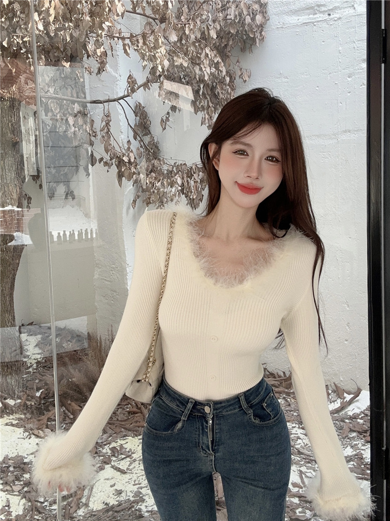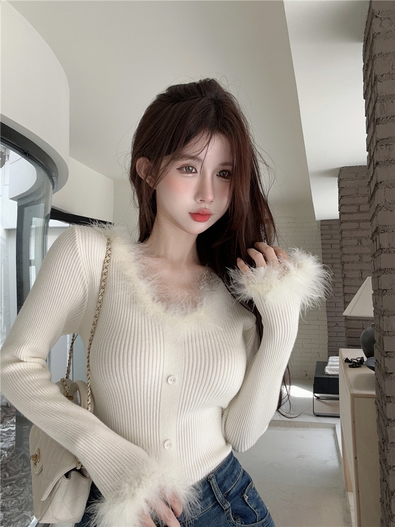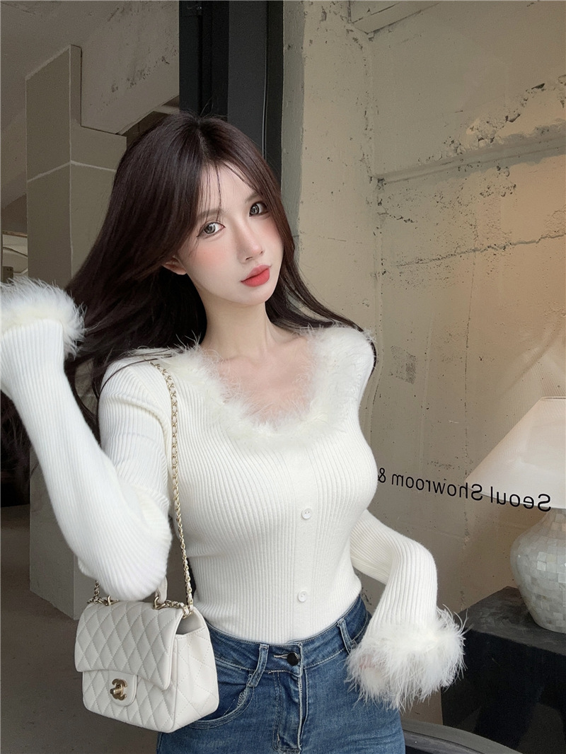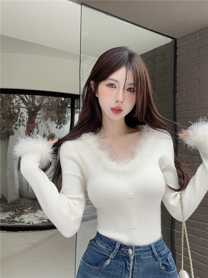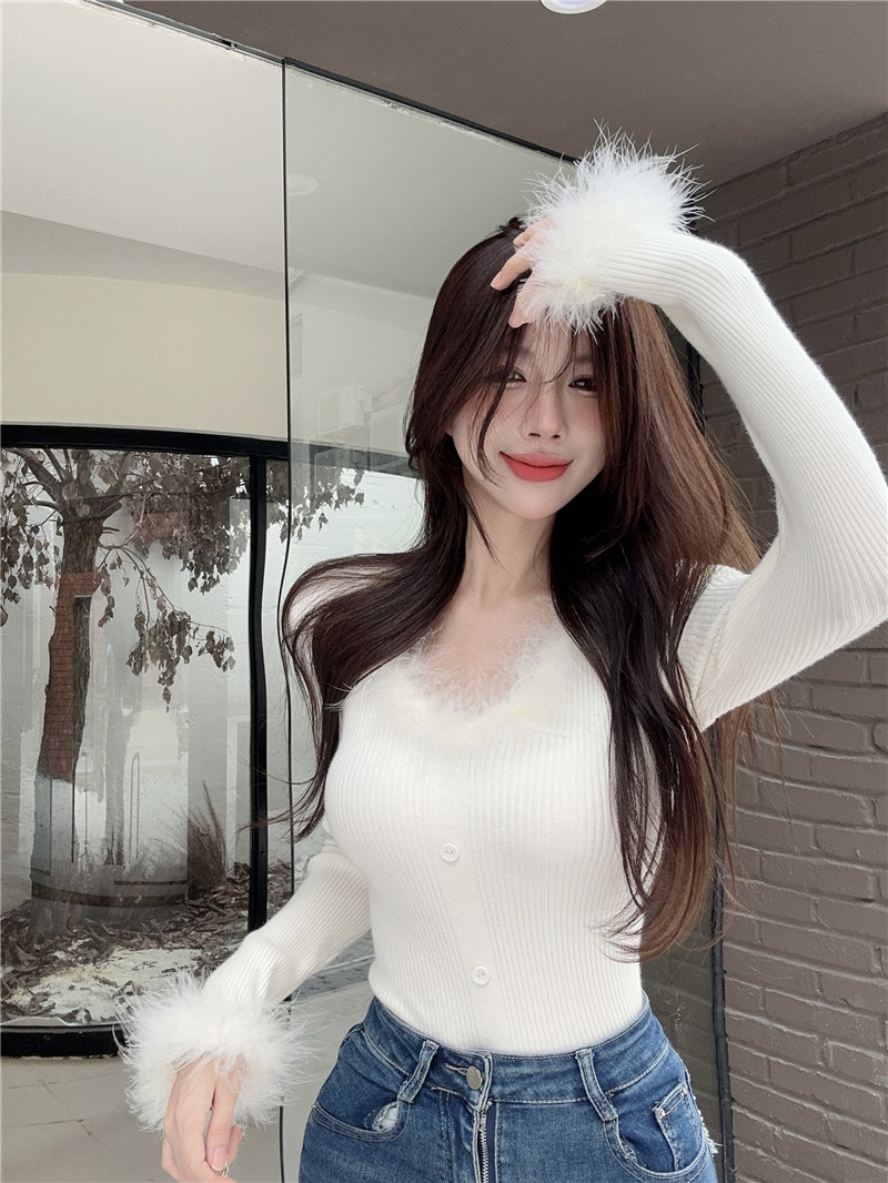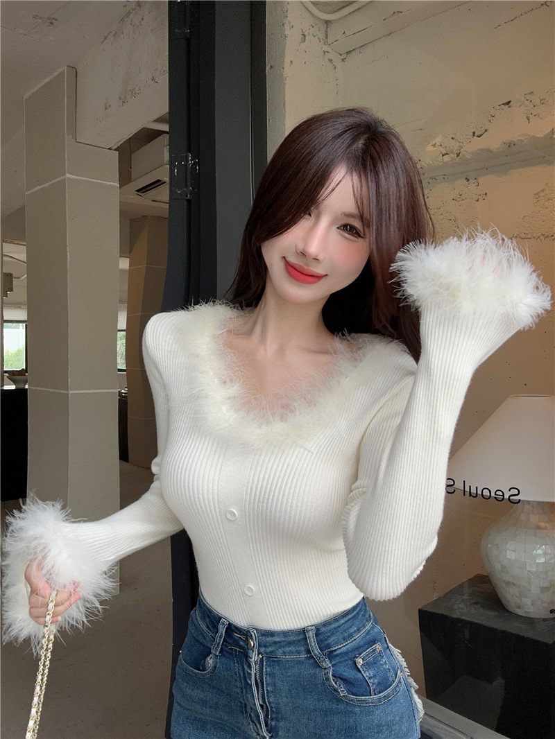 대외 무역 도매 가을과 겨울 디자인 감각 커프 스티칭 깃털 스웨터 여성의 기질 V 넥 슬림베이스 니트 탑스토어 가기