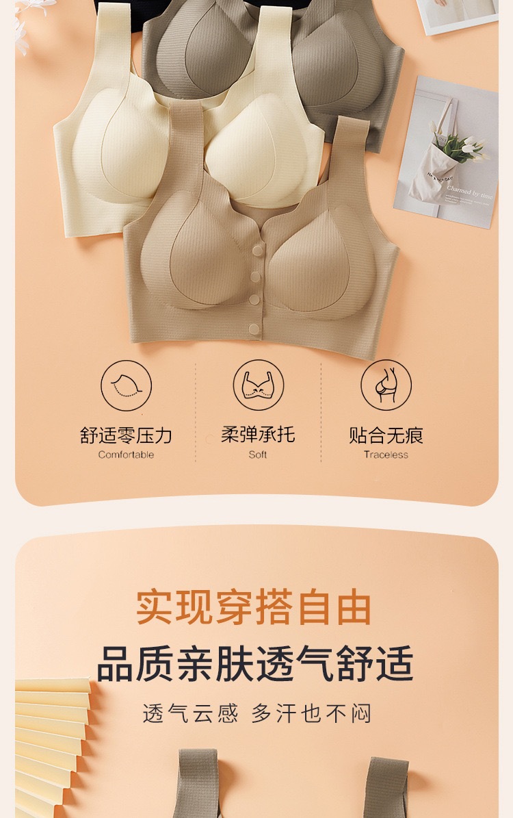 봄과 여름 프론트 버클 리프팅 원활한 속옷 플러스 사이즈 얇은 작은 가슴이 처짐 방지 유방 수축 조끼 브래지어를 밀어 올립니다.스토어 가기