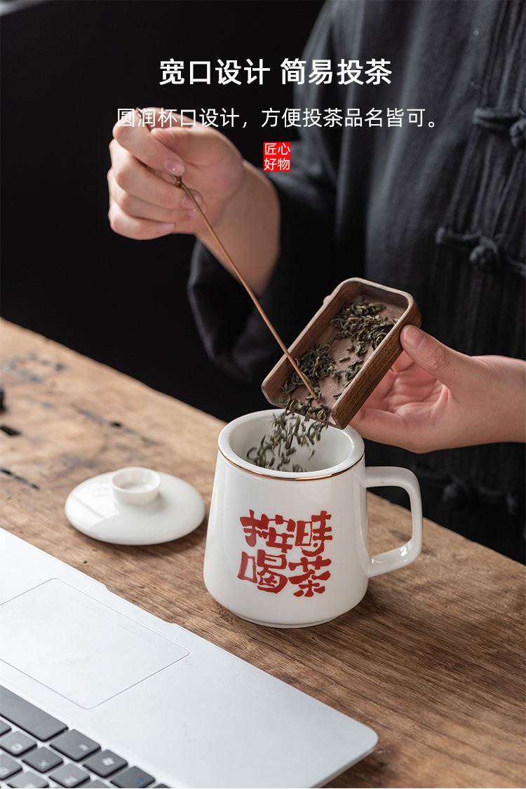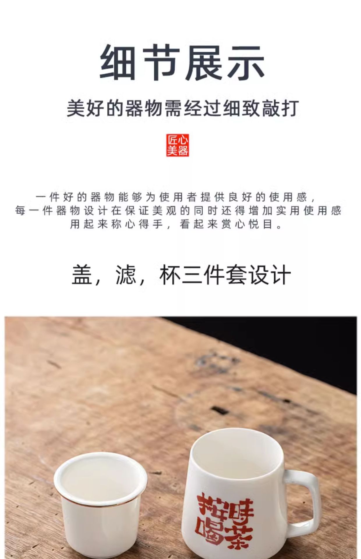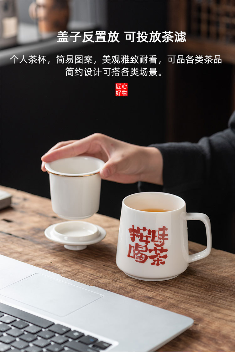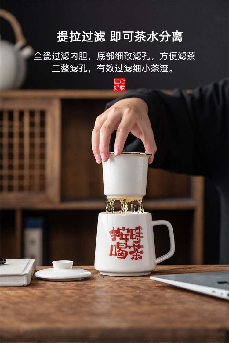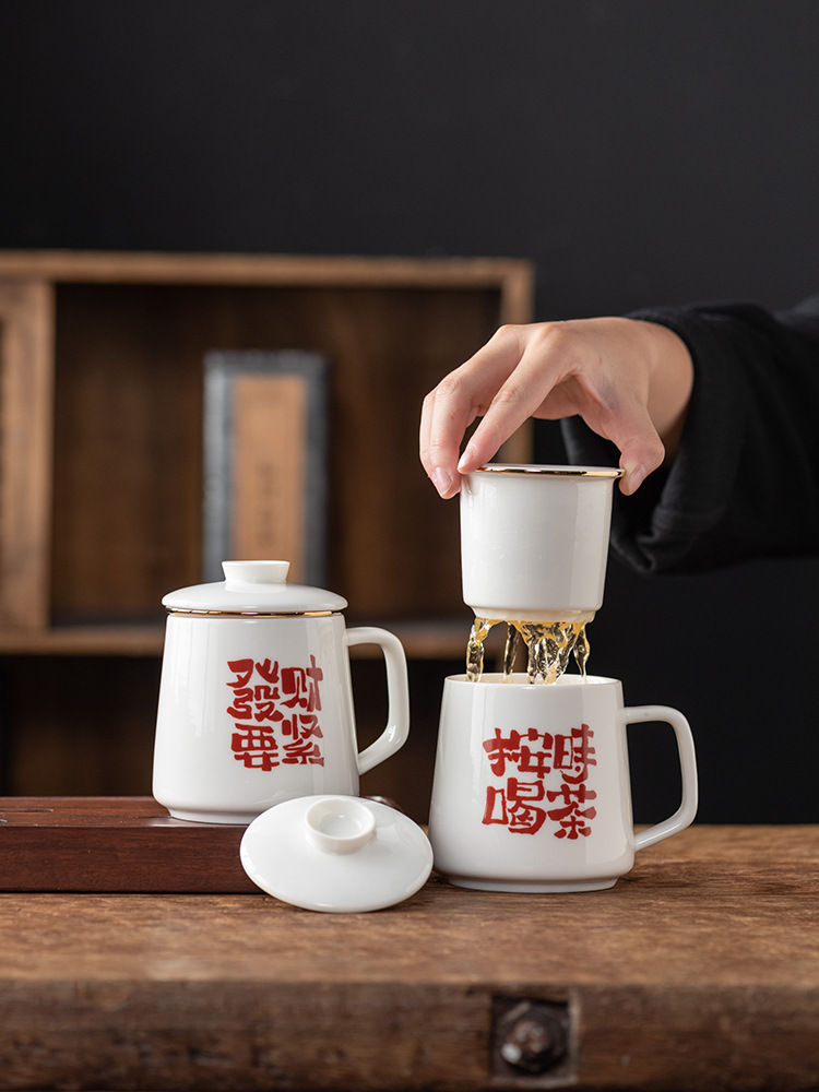 머그잔 수트 옥 티 컵 뚜껑 필터 티 컵 차 분리 흰색 도자기 컵 세라믹 티 컵 남성과 여성 커플스토어 가기