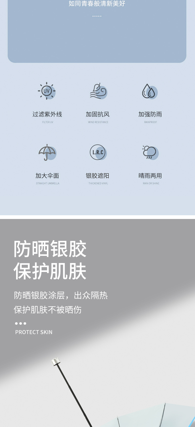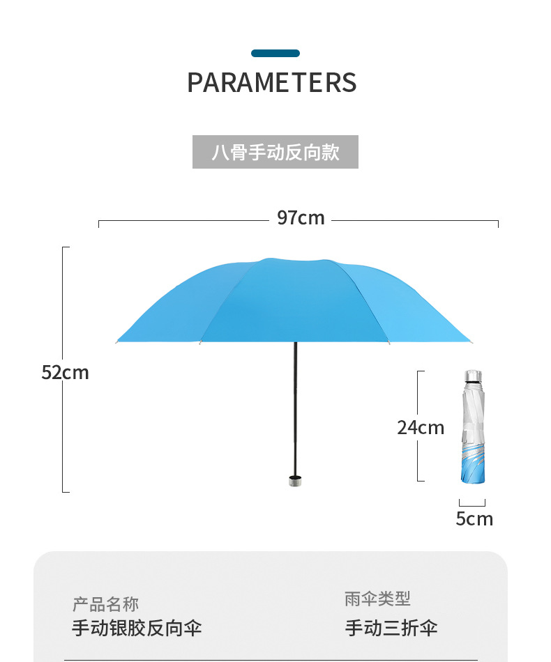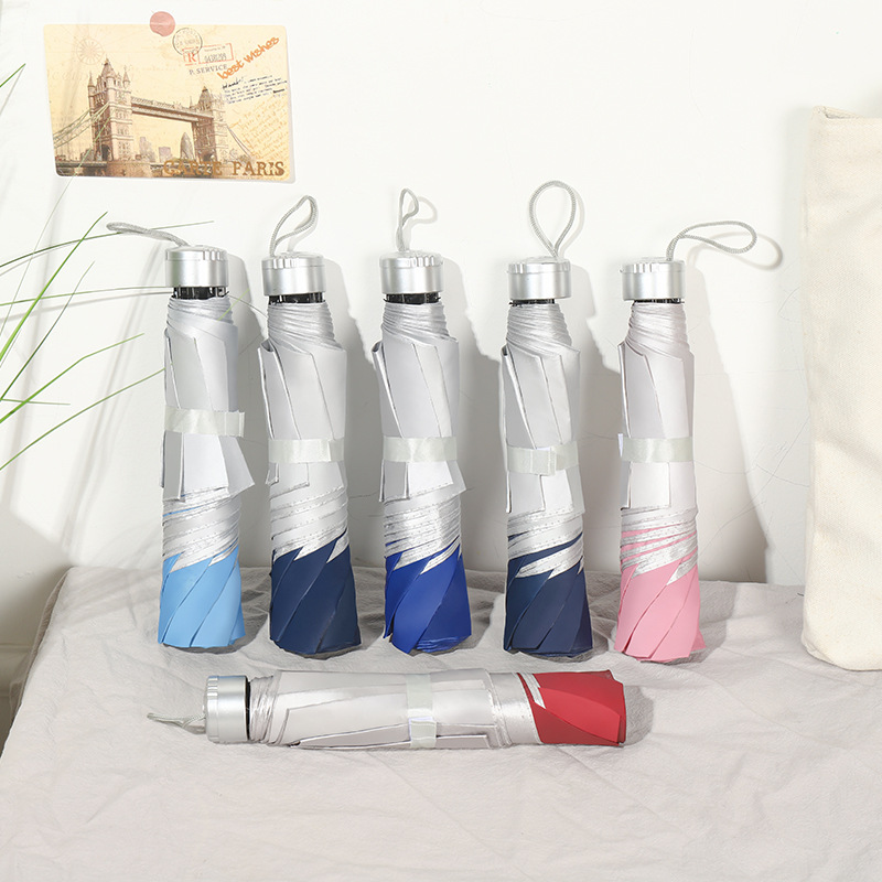 스톨 공급 7 뼈 8 개 실버 접착제 접는 우산 손으로 열린 태양 보호 차양 간단한 남성과 여성 이중 사용 우산