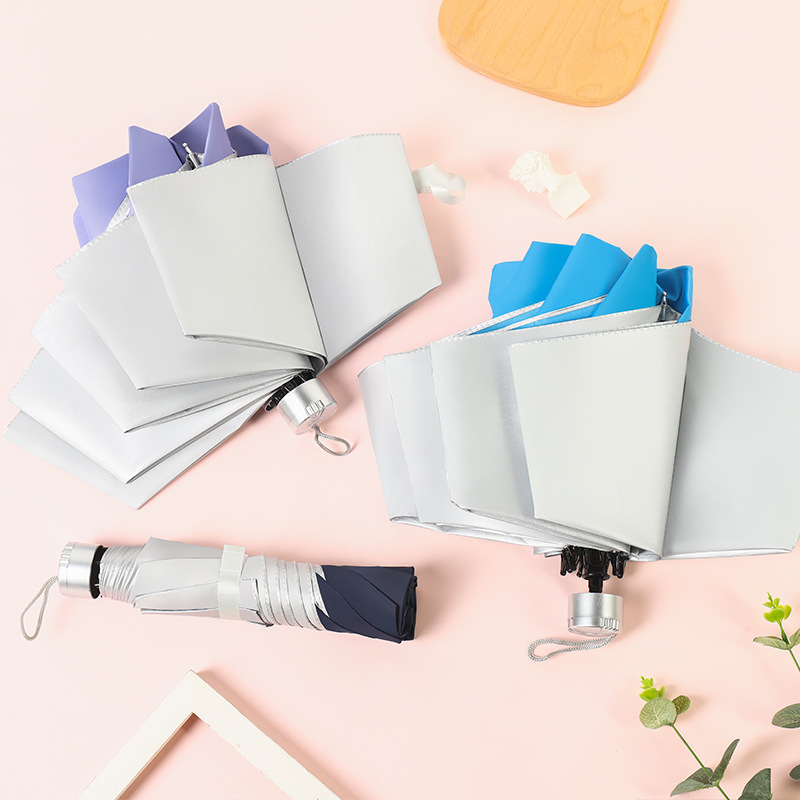 스톨 공급 7 뼈 8 개 실버 접착제 접는 우산 손으로 열린 태양 보호 차양 간단한 남성과 여성 이중 사용 우산스토어 가기
