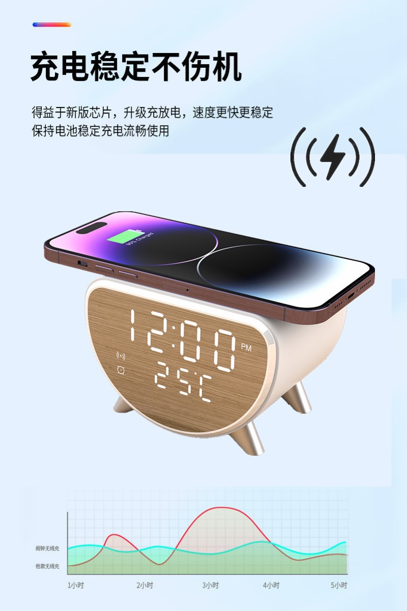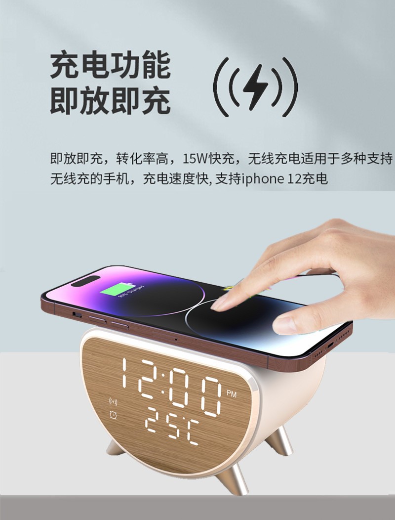 국경 3 대 1 무선 충전기 데스크탑 다기능 시계 알람 시계 온도계 15W 휴대 전화 무선 고속 충전