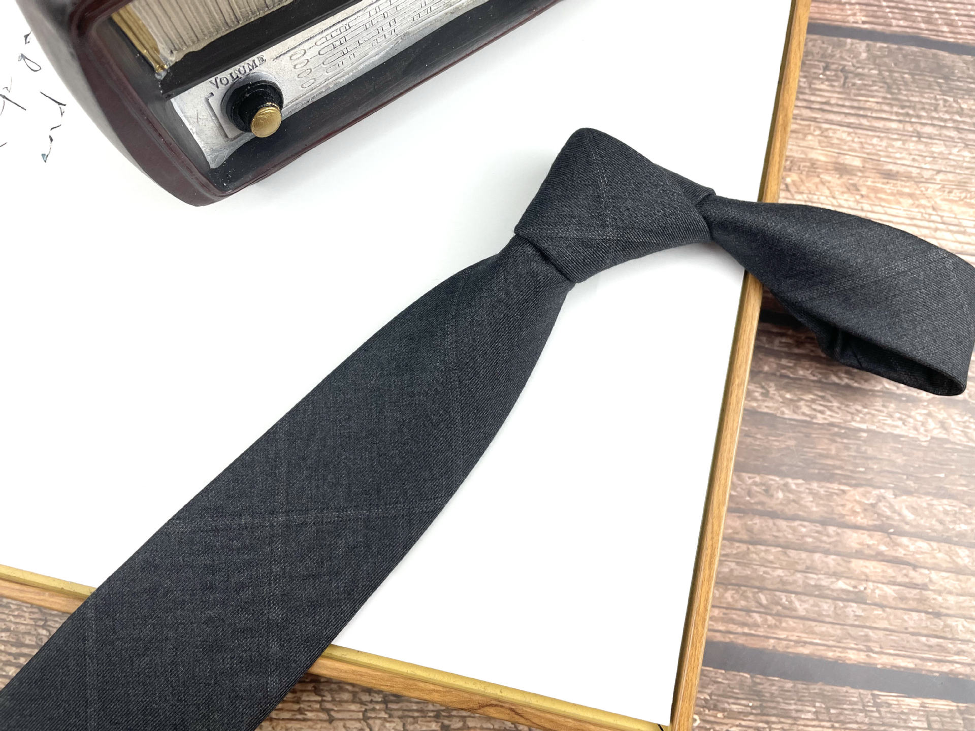 • 14 번 다크 그레이 어두운 격자 무늬 넥타이 7.5CM 와이드
