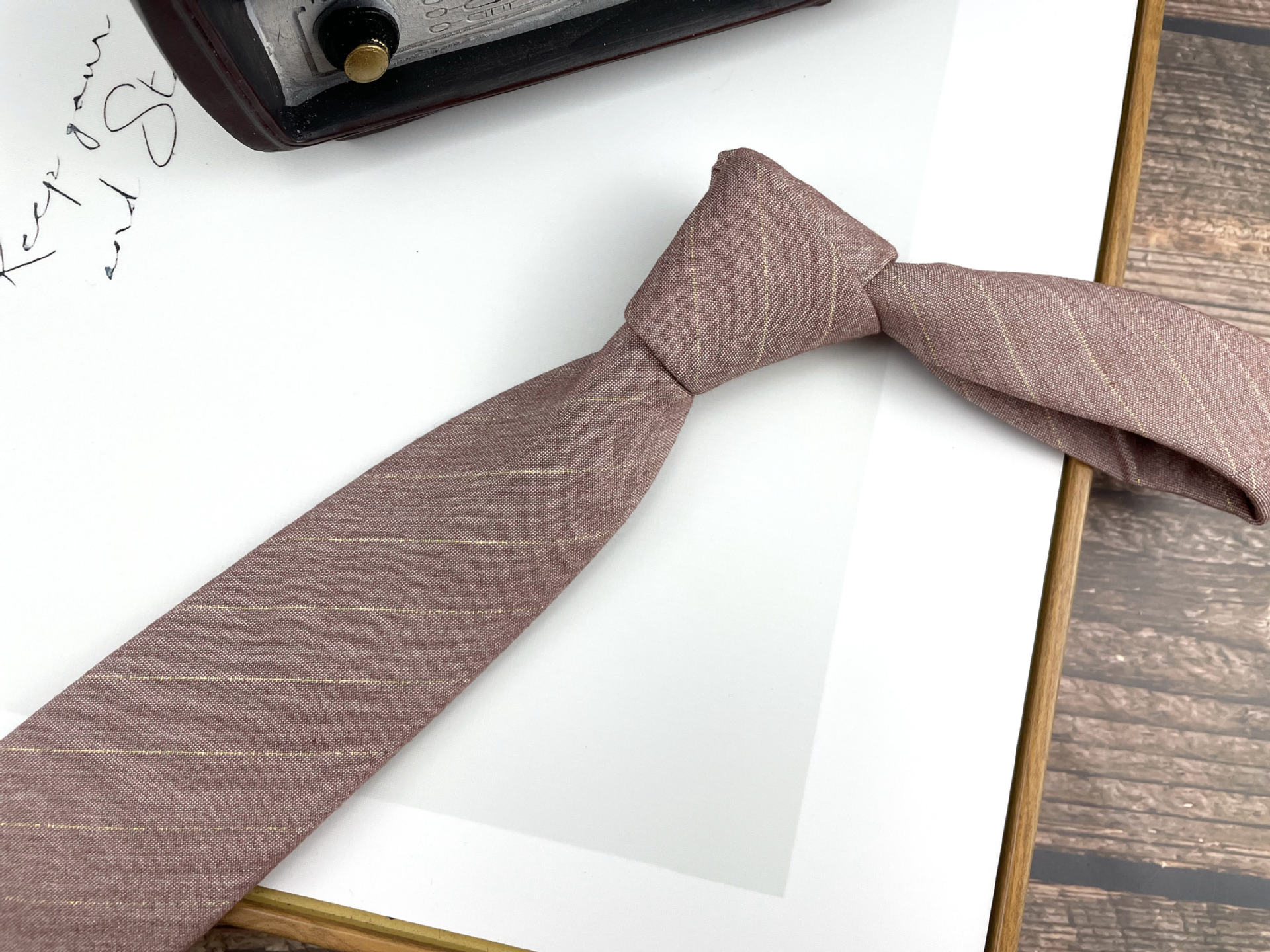 • 6 번 핑크 골드 스트라이프 넥타이 7.5CM 와이드