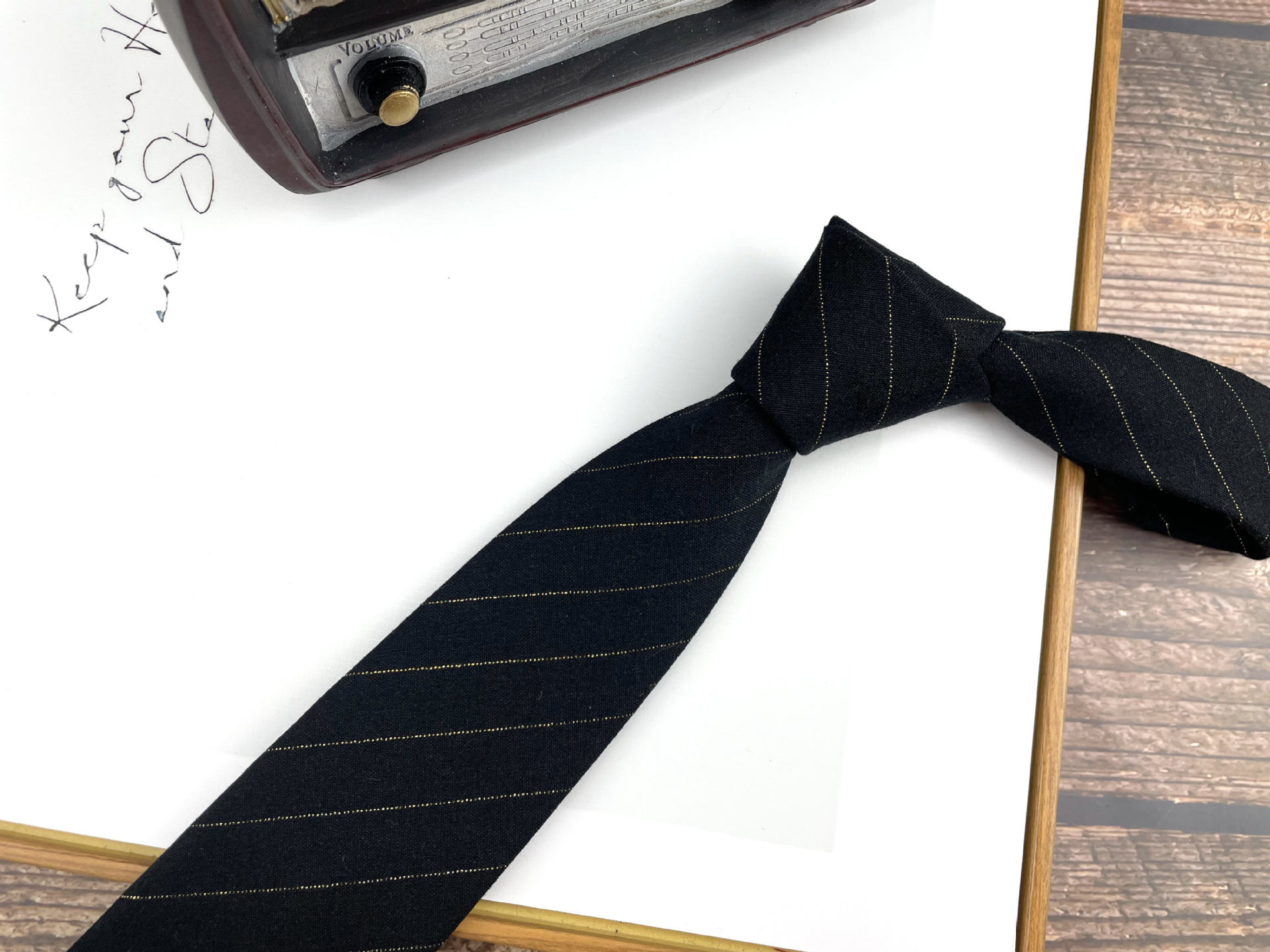 • 7 번 블랙 골드 스트라이프 넥타이 7.5CM 와이드