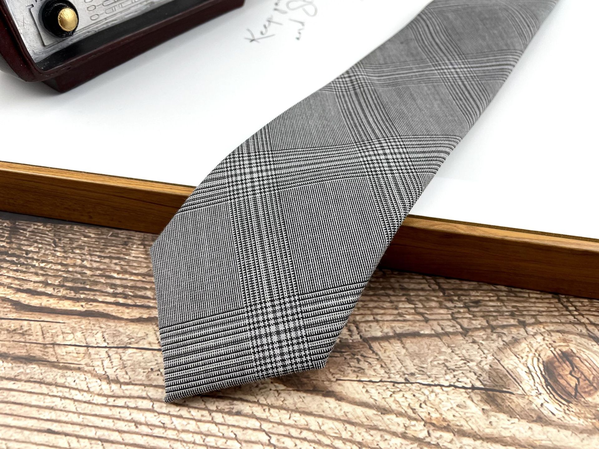• 16 번 회색과 흰색 격자 무늬 넥타이 7.5CM 너비