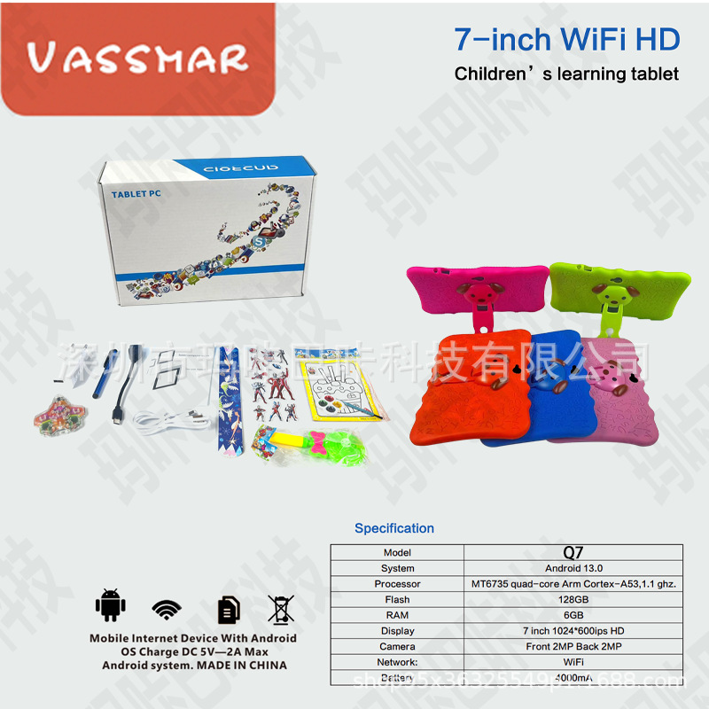뜨거운 판매 대외 무역 국경 간 전용 7inch 어린이 태블릿 Q7 안드로이드 WIFI 도매