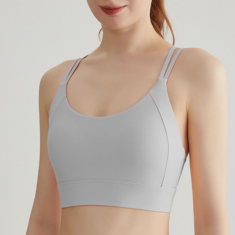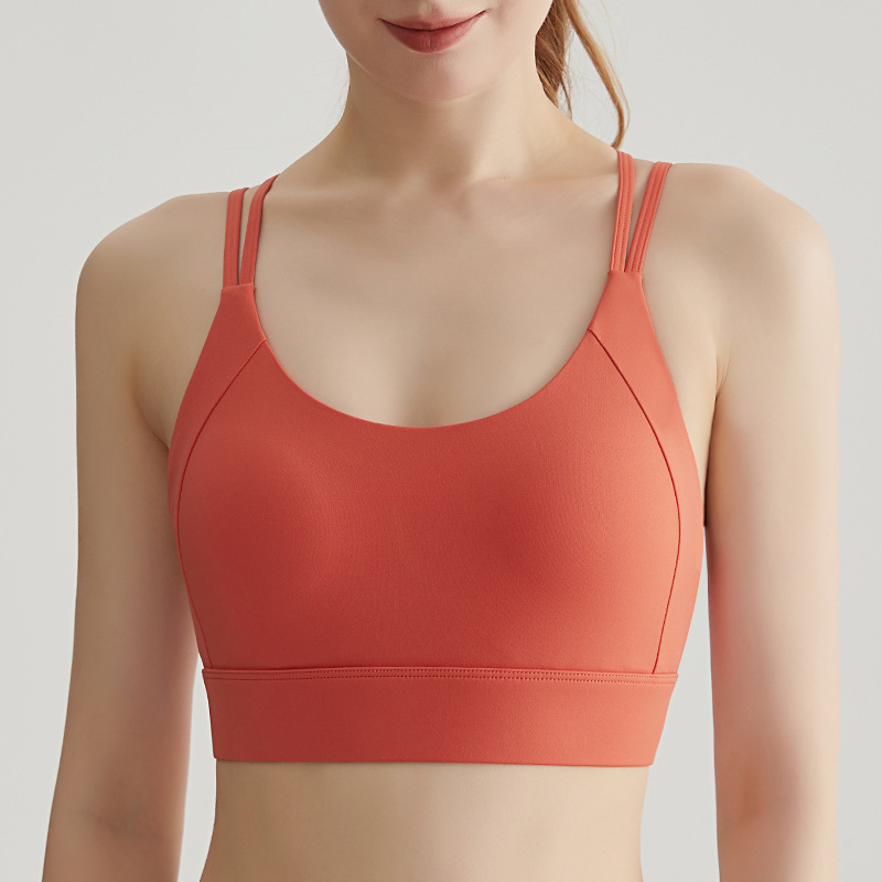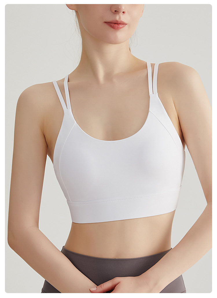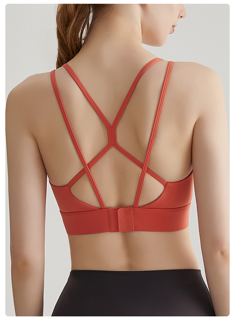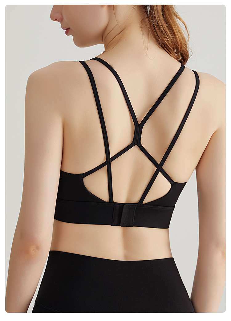 Chuanton 고강도 충격 방지 스포츠 속옷 여성용 원피스 고정 가슴 패드 얇은 어깨 스트랩 크로스 스포츠 브라